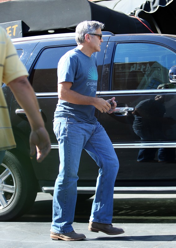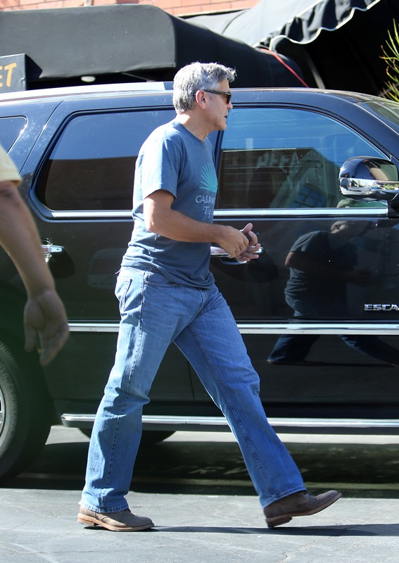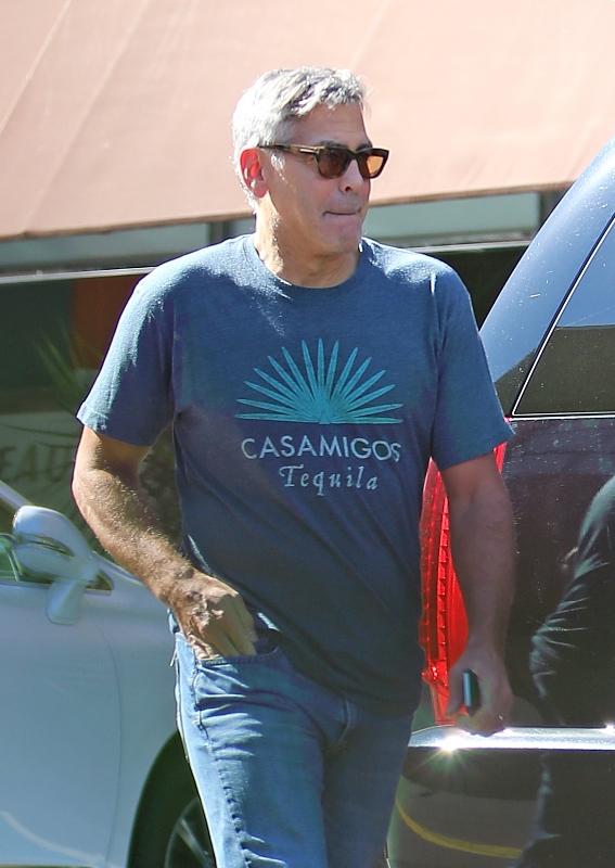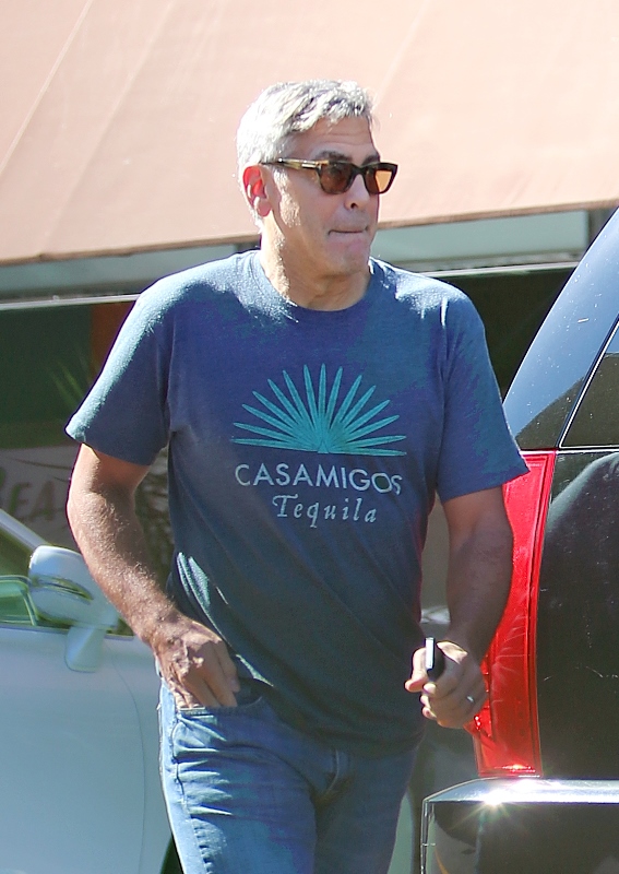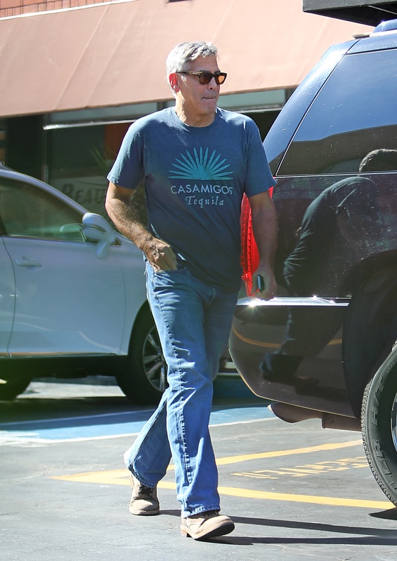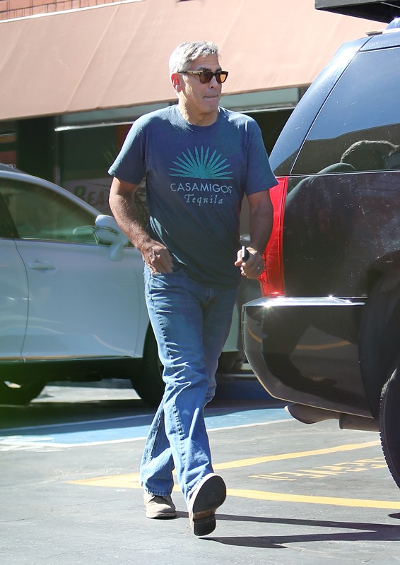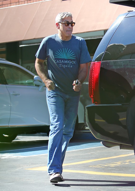 George Clooney was out in Studio City yesterday, supposedly visiting his chiropractor. While wearing his only t-shirt. Always this t-shirt. Because he owns the company. And the company announced that it’s releasing a new variant yesterday.