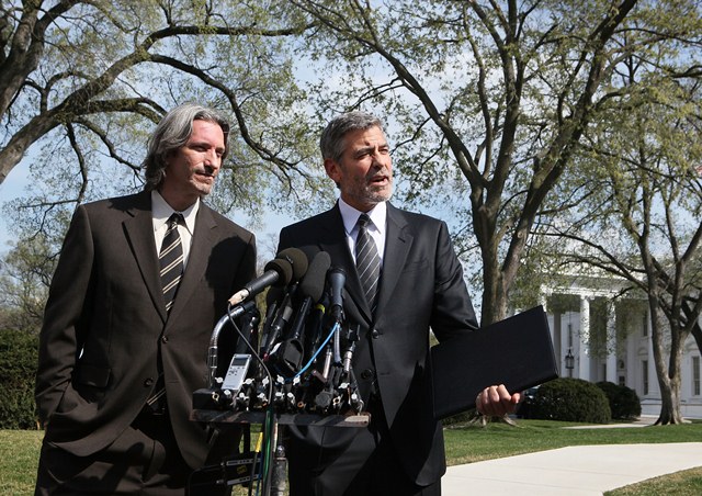 Also attached - George and his bff John Prendergast yesterday addressing the media after their meeting with President Obama. Click here for Save Darfur. George would want you to.