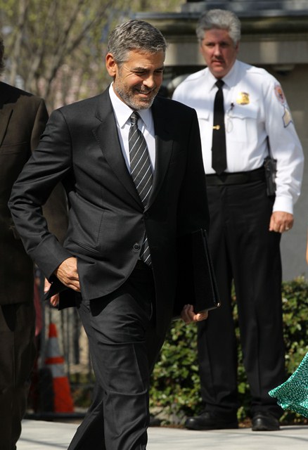 It was a planned protest with an expected result. His dad, Nick Clooney, was with him. This was their intent. To be outside the Sudanese embassy, continuing to raise awareness for the victims of genocide in Sudan, in particular the Nuba Mountains, causing a scene, calling out Sudanese President Omar al-Bashir of blocking food and aid into his country, actions that have resulted in a humanitarian crisis.