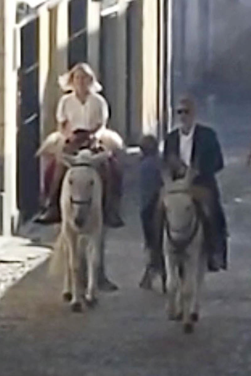 But look! He recruited a friend! Brie Larson is also on set with George, at one point they were filmed riding donkeys. Just yesterday I posted about Jennifer Lawrence’s Amazon gift registry recommendations, basically a brand partnership. There was a certain reaction to it, but it’s not like A List Oscar-winning actors haven’t been doing sponsorships for decades. It’s just that we got used to what those sponsorships looked like from a previous era. That still exists but they’re expanding the idea of what a commercial looks like. Jennifer Lawrence’s “commercial” for Amazon didn’t require her to be on location in Spain, on set, in the hair and makeup trailer, blocking shots, waiting to reposition the camera etc – not that that’s not valuable, important work, but it’s definitely a different use of time and resources. I’m curious how it balances out on the rate scale.