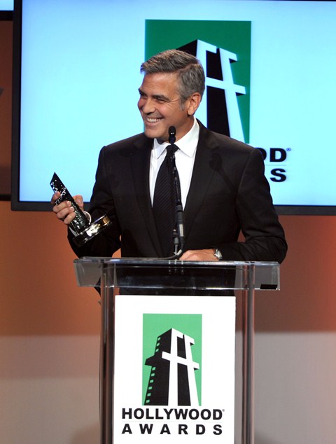 George Clooney received the Hollywood Actor Award last night for his performance in The Descendants. At this point, he would have to do some serious Mel Gibson level f-cking up to not get nominated for an Oscar. The man has too many friends in the business and consistently delivers such strong work, there is no way they won’t call his name among the five...which is why it’s so baffling his compulsive need to not be alone at these events.