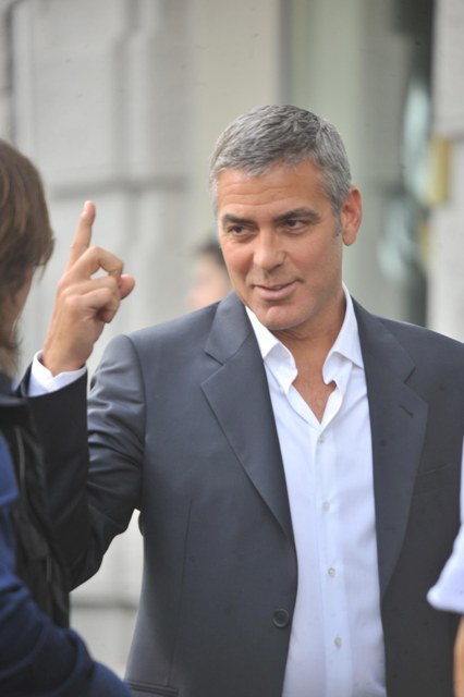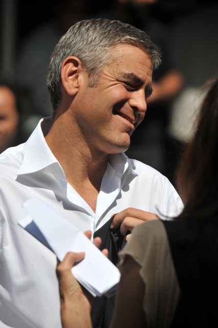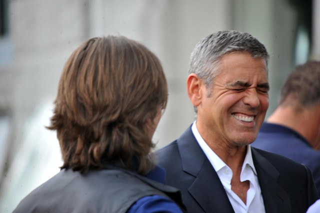 File photos of Clooney last month shooting a commercial from Splashnewsonline.com