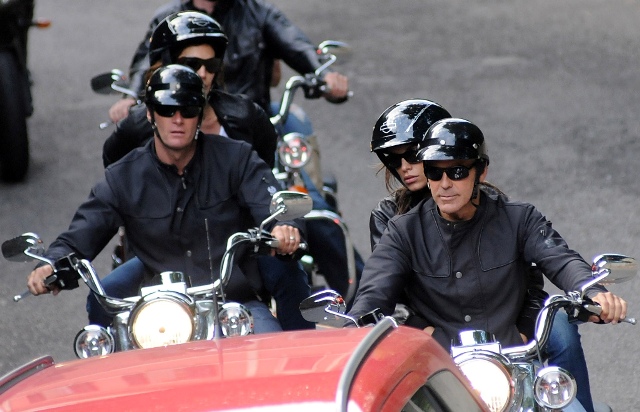Check it out – in Italy, how precious, George and his BFF Rande Gerber, with wife Cindy Crawford, and his new piece Elisabetta Canalis, riding around town together like couple clones. Rande and Cindy are regular periphery players in the George Clooney production and no doubt, they’ve seen it all before. And they’ve obviously learned to roll with his lady styles. Oh hello. Here’s his flavour of the summer. Let’s see how long this one will last.