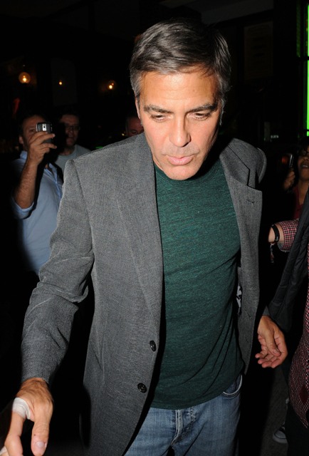 This is George leaving the Venice Film Festival on his own yesterday and arrived in Toronto last night, spotted out for a Japanese dinner and signed autographs for fans outside – wonder if this means Elisabetta isn’t joining him in Toronto? If that’s the case, it’s very disappointing.