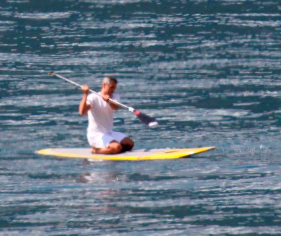 Here they are on the water, paddling, and um, enjoying the view. Then at night it’s out for dinner, throwing back some drinks, obviously accompanied by the ladies, one of them supposedly an Italian actress called Manuel Arcuri.