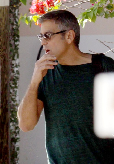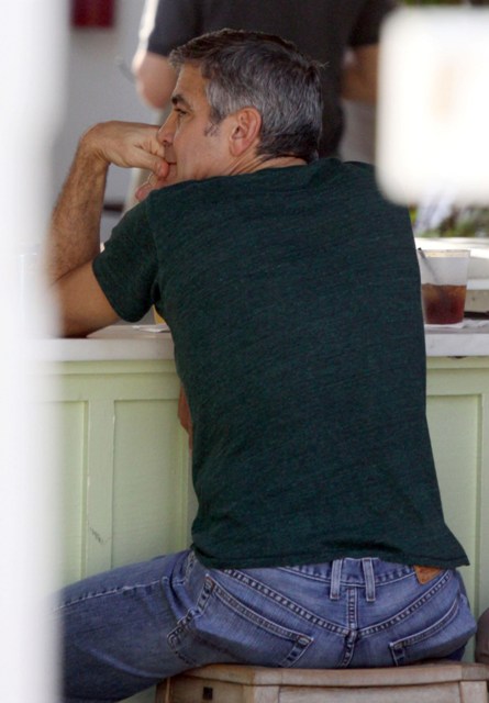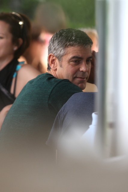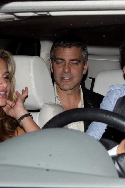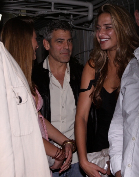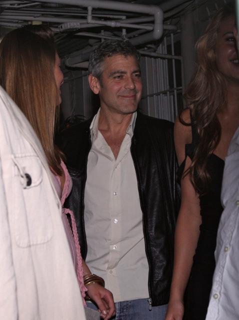 As you can see, George has that famous smirk on his face. His “I know you know I’m up to no good, and I know you want to join me” expression. Per his usual standard, the women he surrounds himself with aren’t exactly the … um….elegant…type, but we are accustomed to this, non? George’s taste has never been particularly high end. He likes the good –time girls. And those MiniVan moms, they’ve never held the good – time girls against him. They all think the good – time girls are simply a transition until he meets them. It’s the Great George Clooney Myth.