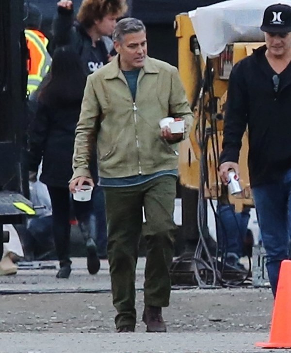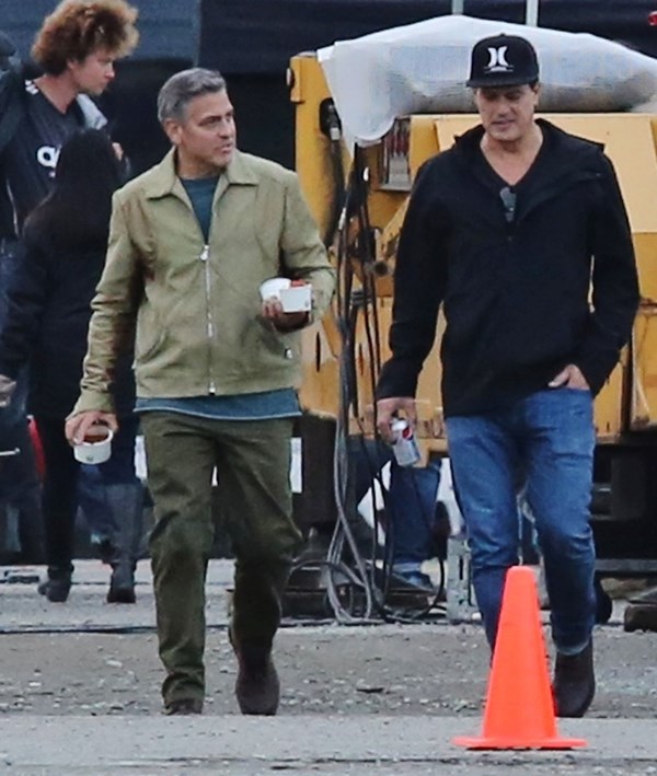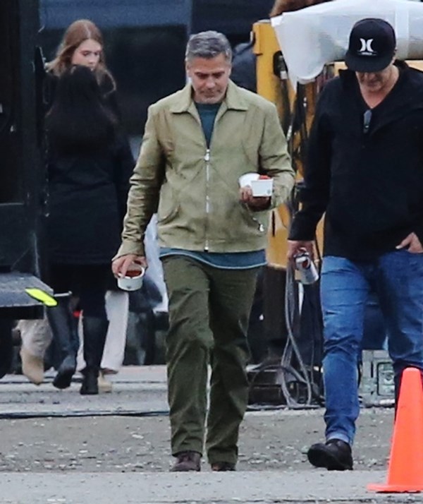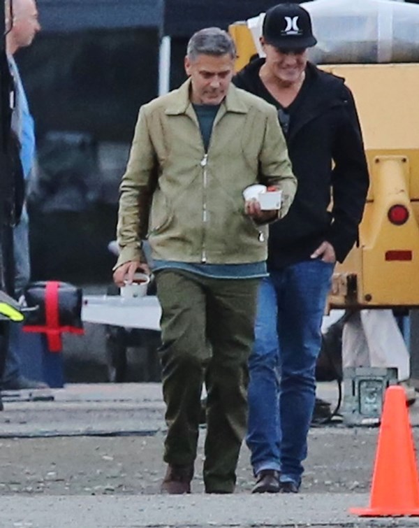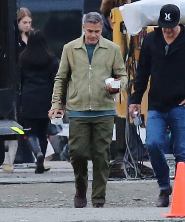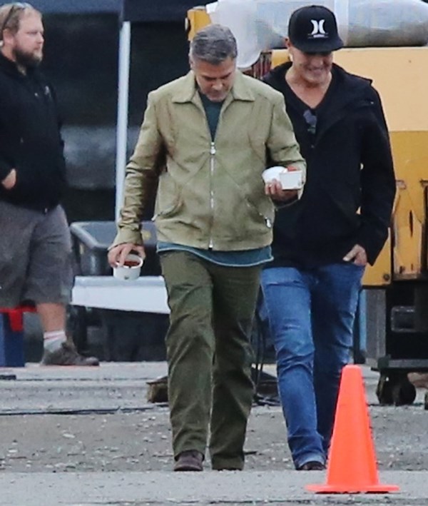 Amal Alamuddin Clooney went back to work this week, advising the Greek government on the Parthenon Marbles situation. She returned to London yesterday. Here’s George Clooney in Vancouver, back for Tomorrowland. Will his wife show up in Canada for the weekend?
