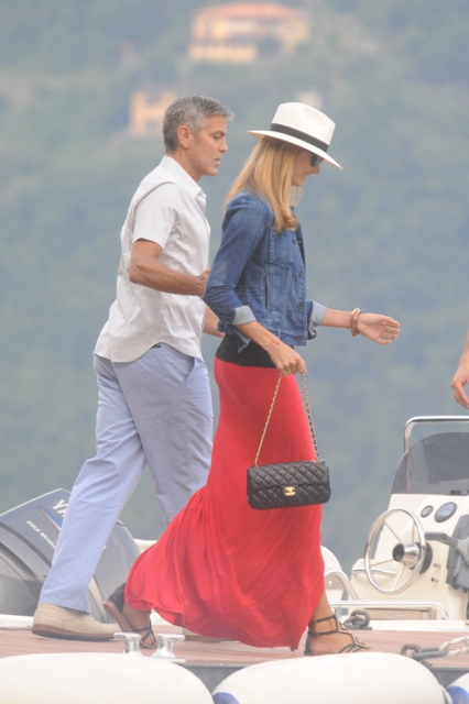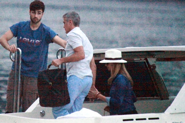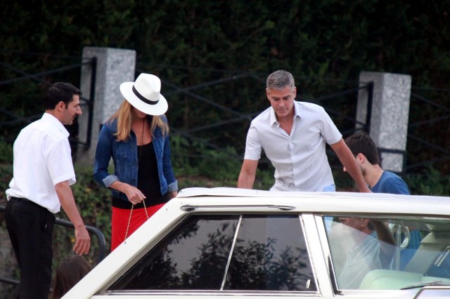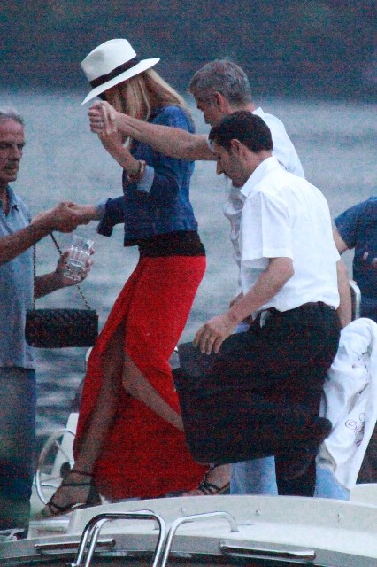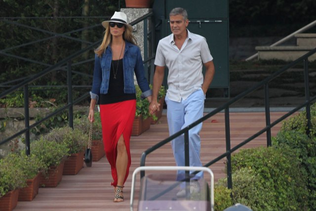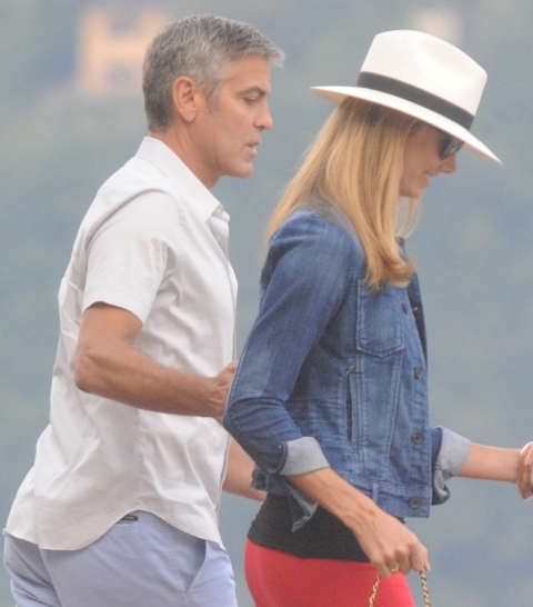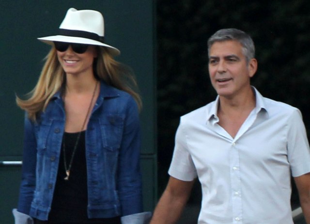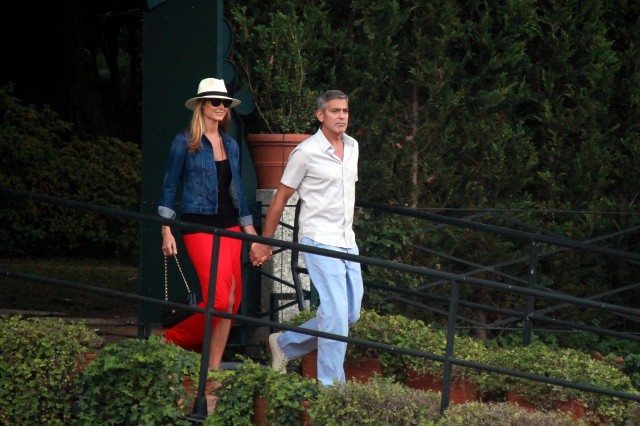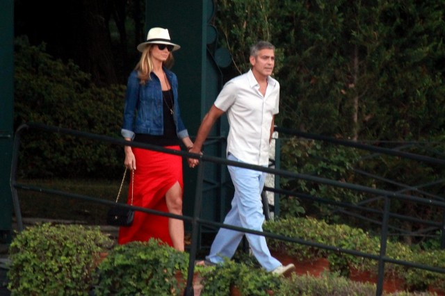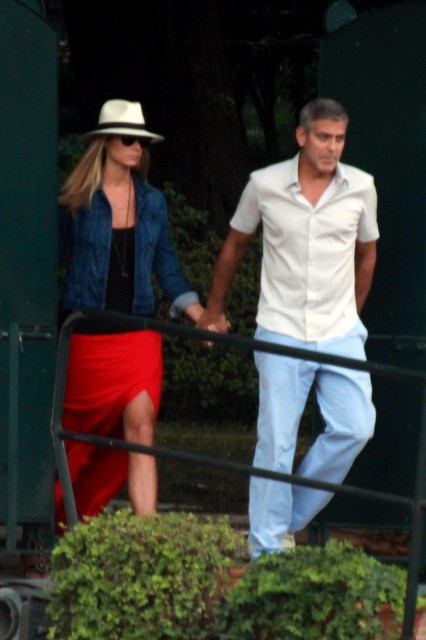Here’s Clooney hand in hand with Stacy Keibler in Italy yesterday. He is very lean right now, non?