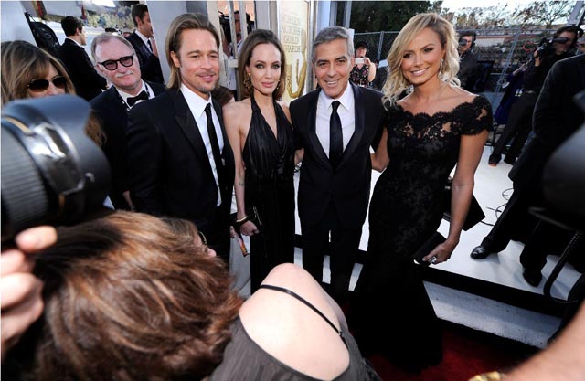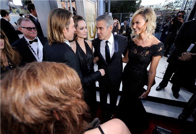 As you know, as you’ve seen, George Clooney has been working it HARD the last 6 weeks or so for his Best Actor Oscar. Up to last night, he was winning everywhere. He won so much he’d accept his awards like monologues, prepared speeches about his parents toiling in the grain fields and appreciating his opportunities, not unlike the way a political candidate talks about this and that constituent during a rally in a barn somewhere in the Midwest.