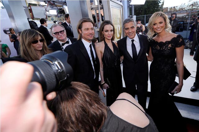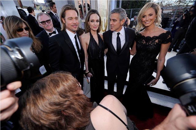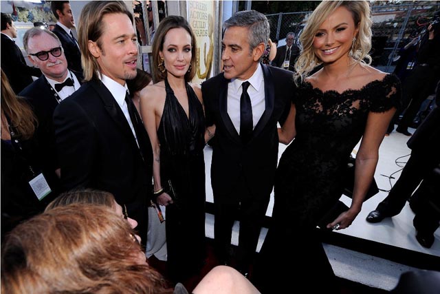 Check them out, all four, last night, posing together, dispelling rumours that Angie hates Stacy... ish. Someone looks a lot more eager and, well, it’s definitely not the Jolie.