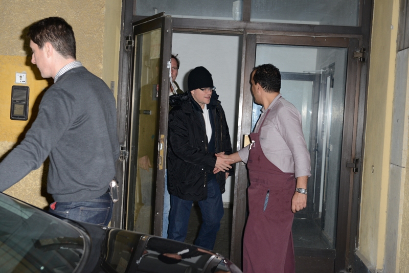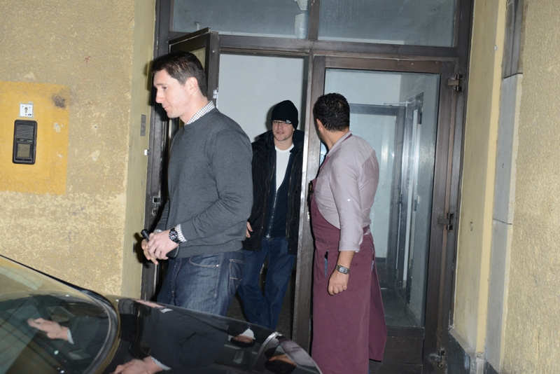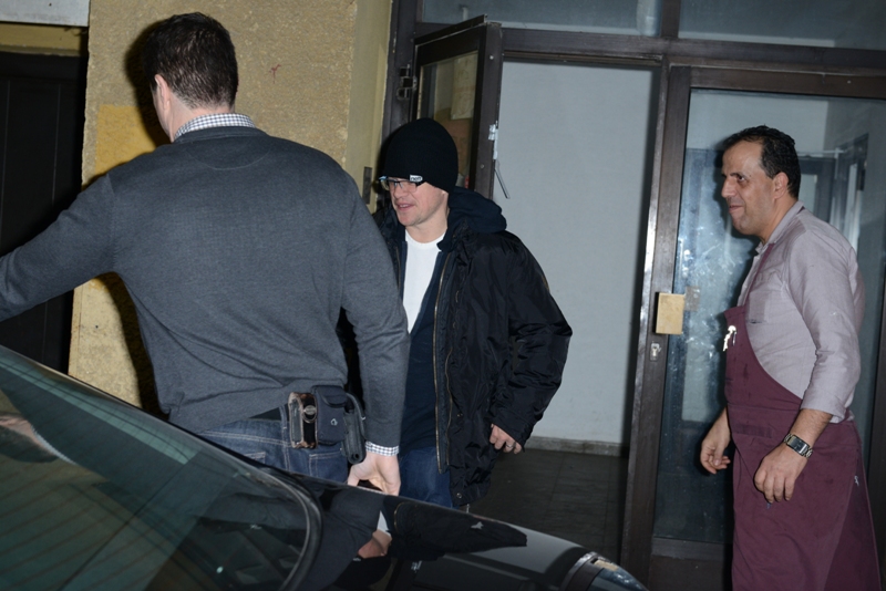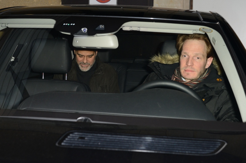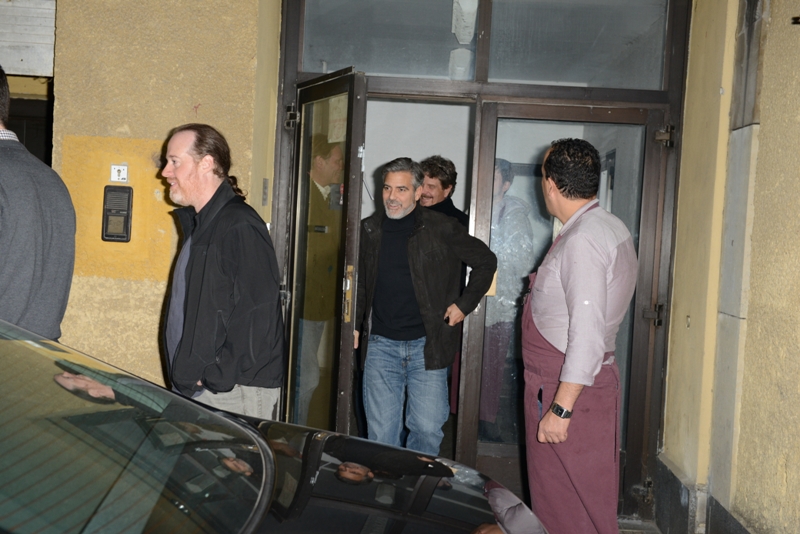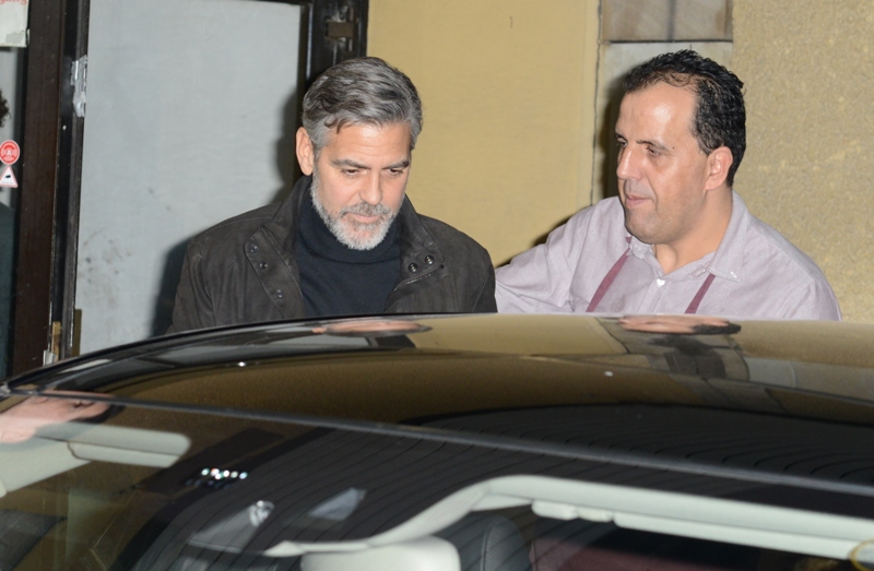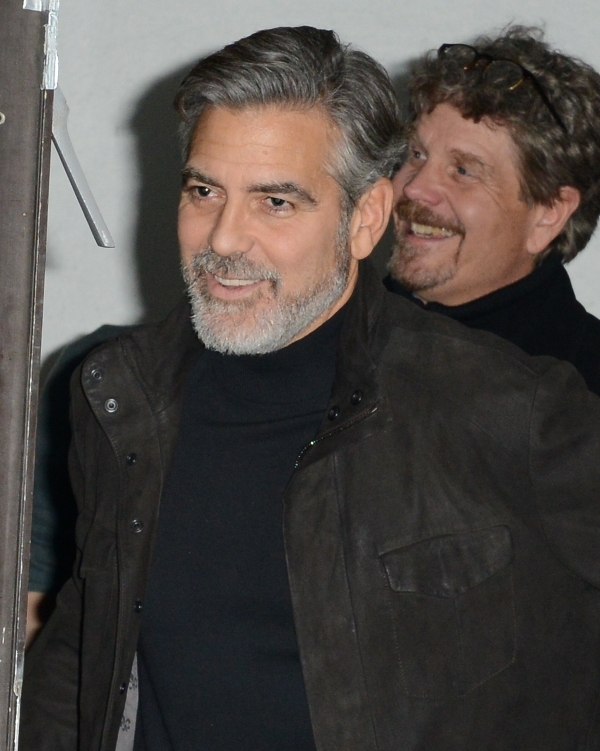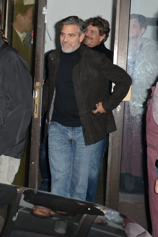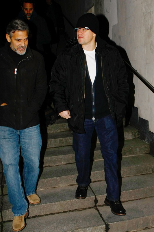 Well here they are, together again. Or two of them at least. Check out George and Matt having dinner in Berlin last night where George has been scouting locations in preparation for The Monuments Men. He’ll be directing Matt and Daniel Craig and Cate Blanchett and Bill Murray and John Goodman and in a film based on the true story of The Monuments Men who protected art and artifacts from destruction by the Nazis in WWII. So...kinda like Ocean’s in that the Sexy Men! Have A Plan! only, obviously, with profound historical significance. And, hopefully, they shut the f-ck up and listen whenever Cate has anything to say. Sh-t, I want this movie to come out tomorrow.