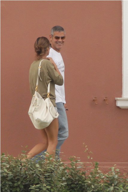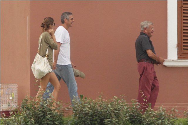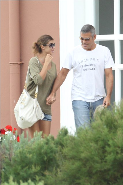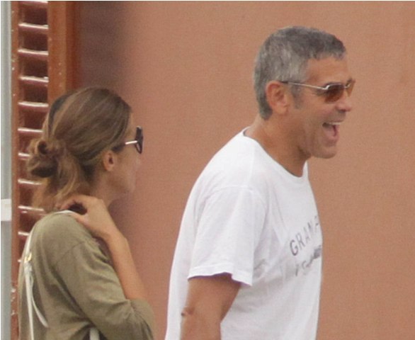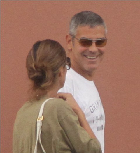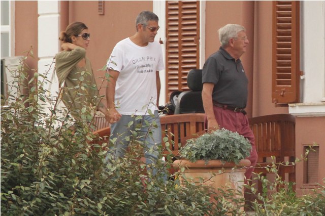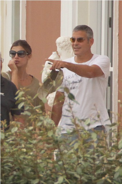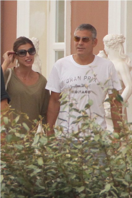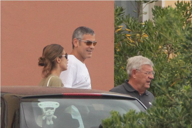 Never mind the cocaine and prostitution scandal allegations. Perhaps it served her well. She came to him well prepared. And now she’s enjoying the benefits. Here they are, in Sardinia, with her folks on holiday. George looks happy and relaxed, the happiest and most relaxed he’s looked in a long time, taking some time before beginning work on Farragut North, his next directing assignment, the first since 2008’s disappointing Leatherheads.