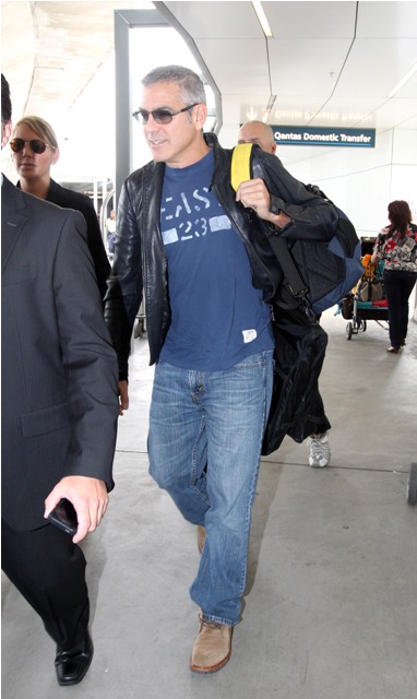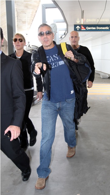 Attached - George leaving Sydney today after speaking at a conference there. He also took time to visit with Cate Blanchett, platonically, because she’s happily married but even if she wasn’t, he wouldn’t be interested because he doesn’t ever appear to be interested in interesting women anyway.