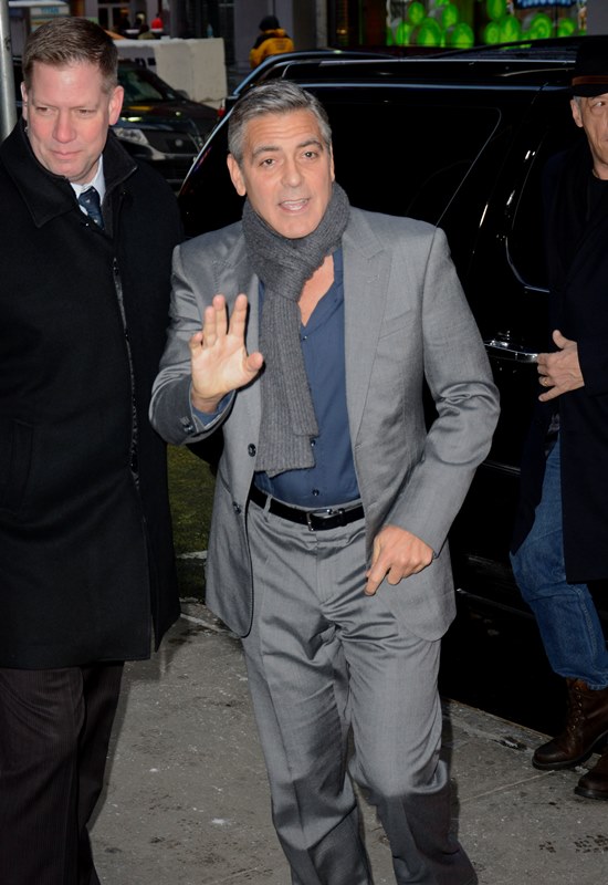 George Clooney is all over the place for The Monuments Men. I even saw him on Kelly & Michael this morning on the press circuit. George is very selective about his press. He doesn’t make every stop. But I feel like he’s making more stops than usual this time. A George Clooney Hustle is always fun.