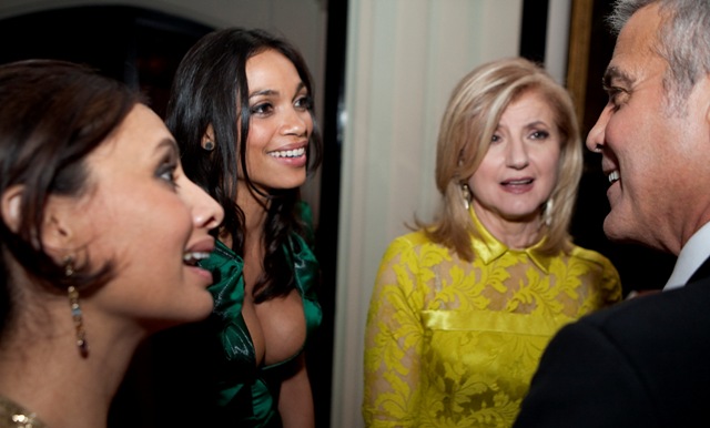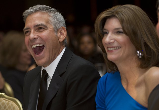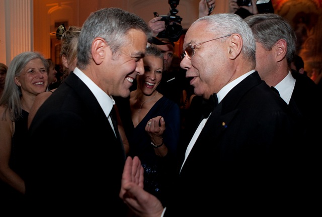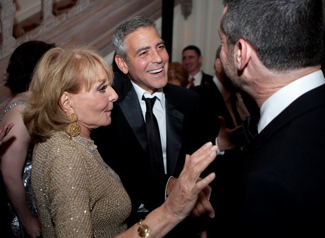 Still, it certainly didn’t seem like George was missing her terribly. As you can see, when the real President isn’t around, George is the centre of universe, the main attraction at the Vanity Fair after party where he was the star everyone else appeared to orbit, celebrity and politician alike. I’ve included only a few - there are so many shots of him talking, laughing, shaking hands and kissing babies, but I couldn’t afford them all, sorry.