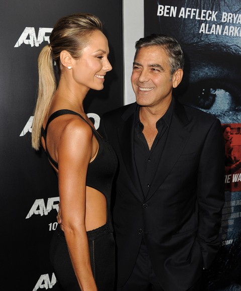 George Clooney took Stacy Kiebler to the Argo premiere last night. Earlier this week there were rumours that he was done with her. Unlike last time when the same rumours were circulating and he had his publicist issue a denial, George chose instead not to release a statement since a public appearance and pictures look much better anyway. Is this a publicity stunt? Well…of course, always. But that doesn’t mean they’re hiding anything. After all, when George is done, he’s done. He doesn’t need to show up on a red carpet and pretend he’s not done. The truth is Stacy’s standing is just as secure as it has always been, so long as she takes care of her body (and you can see that’s not a problem), doesn’t talk sh-t about him in the press, and remembers to take her birth control pills, although whether or not she really needs to is another matter entirely.