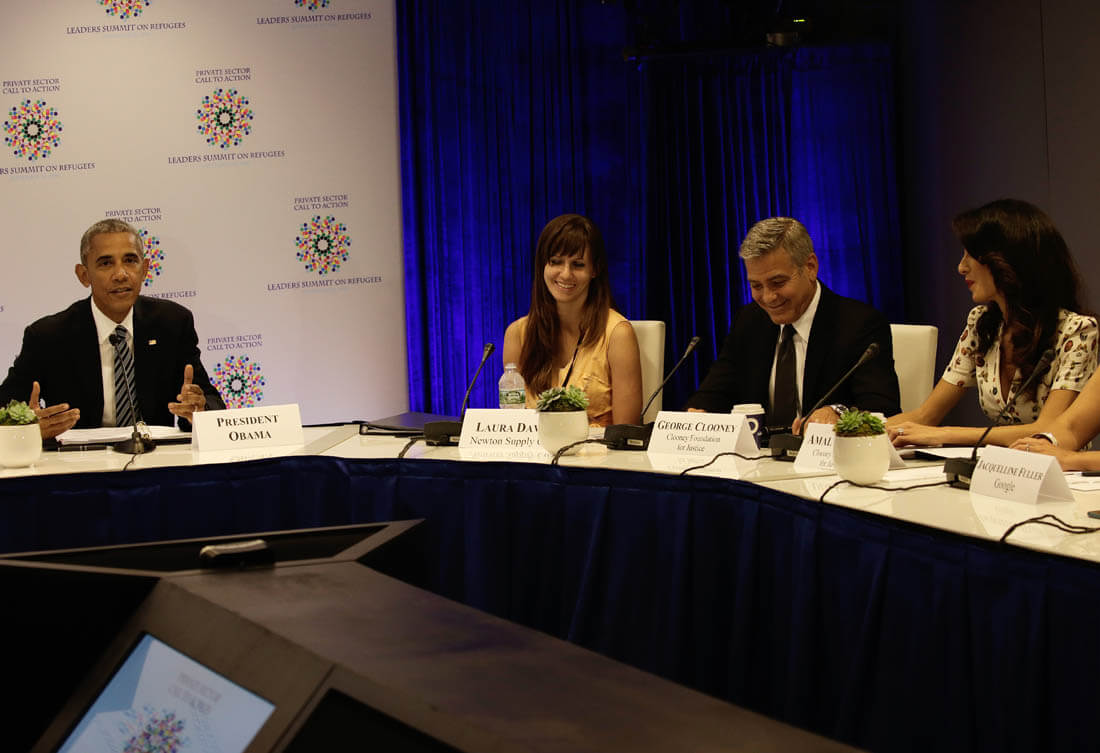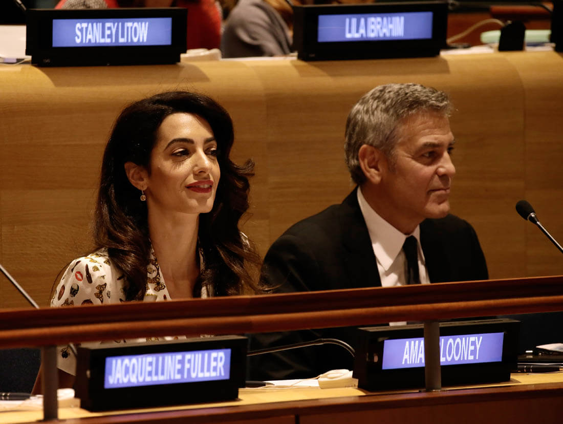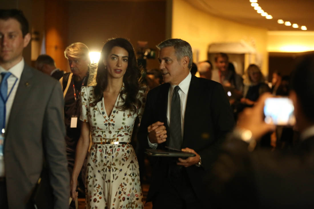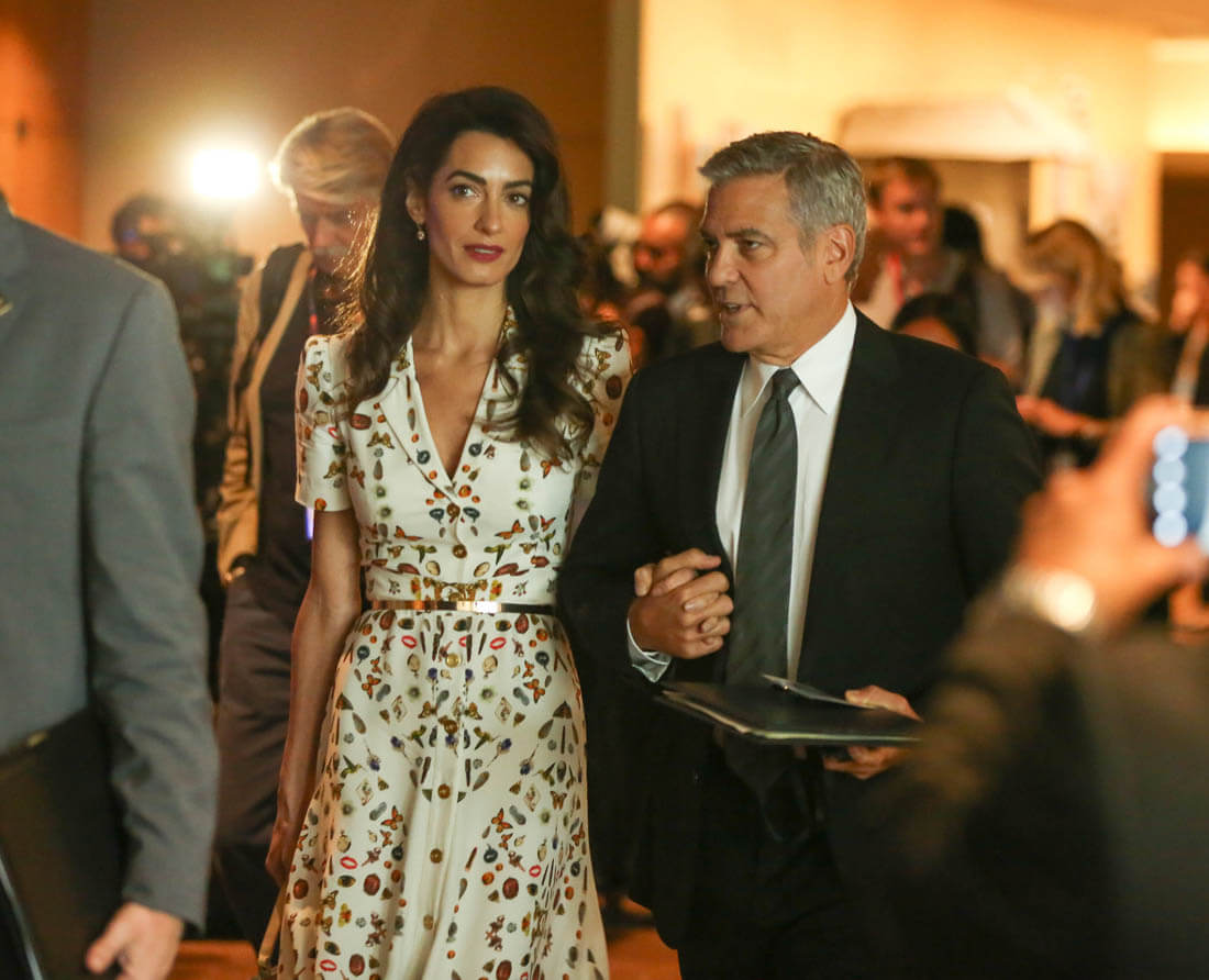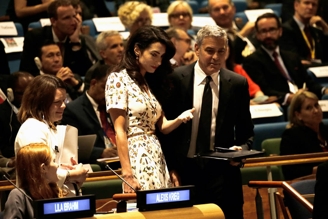 Amal and George Clooney have been in New York this week at various United Nations meetings. Amal recently announced that she will be suing ISIS, explaining to NBC News that, "ISIS can just be reborn under a different name if you don’t actually change the narrative and change people’s minds". Her goal is to do that through law and logic as opposed to military action. So while Amal is crusading to save to the world, the actor she’s married to got asked by CNN about the Brange divorce. Seems he didn’t know: