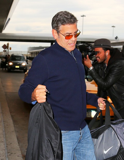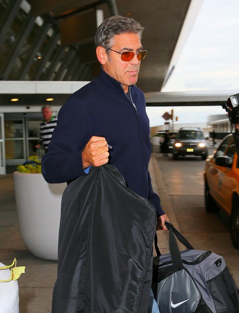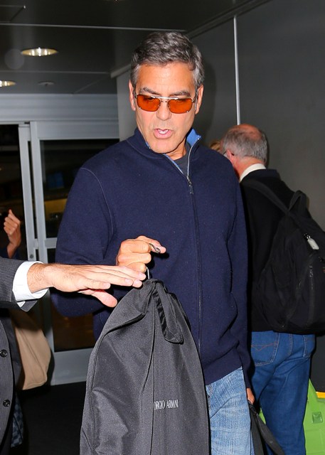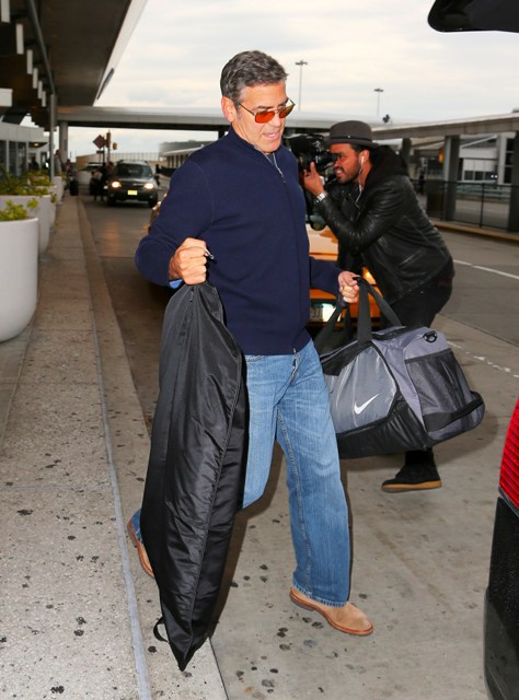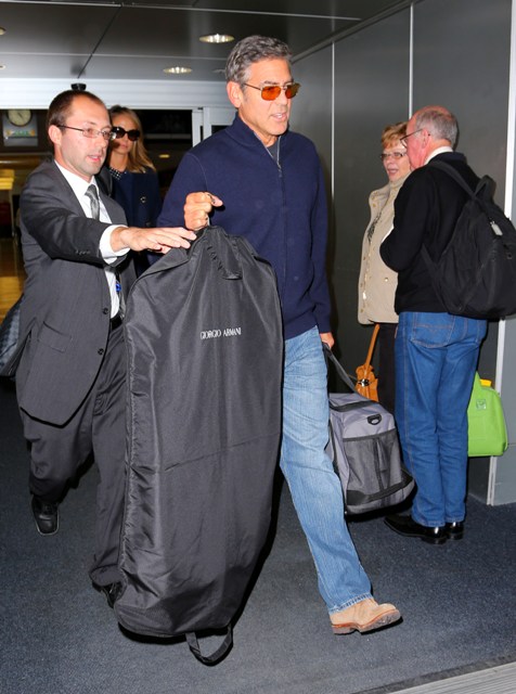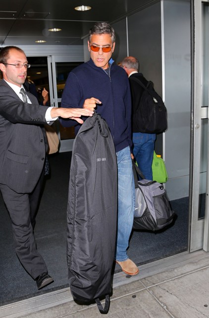 Here are George Clooney and Stacy Keibler arriving in New York yesterday after a weekend of Obama supporting in California. Really into what she’s wearing here. Her casual clothes are actually pretty cute. It’s when she has to get dressed up where we run into problems. Anyway, they had dinner with Bill Murray last night. My point is this is a good life for her right now. And I don’t think she’s dumb enough to f-ck it up by looking for wedding dresses the way everyone was reporting during fashion week.