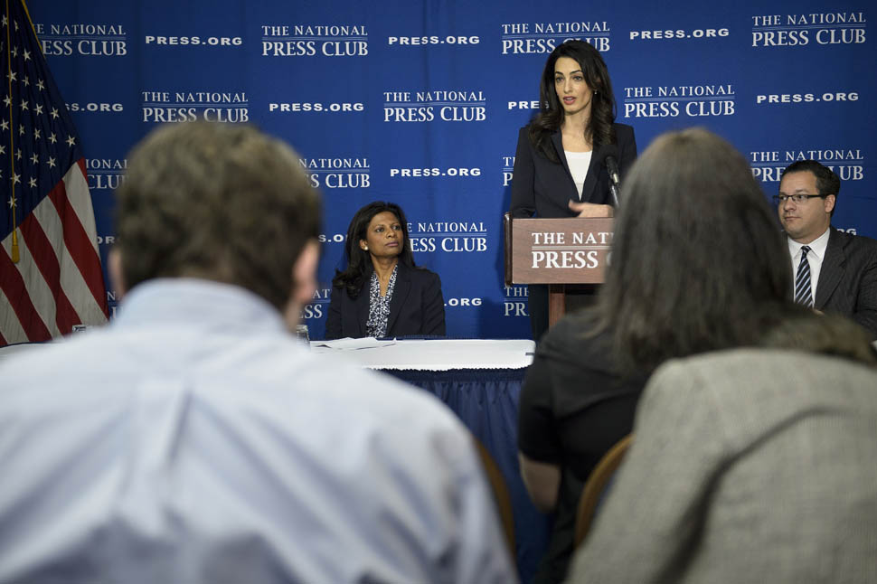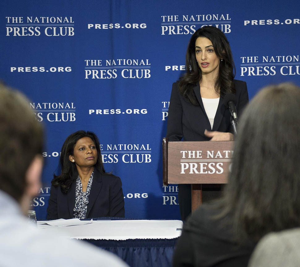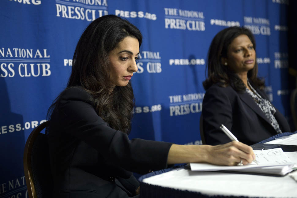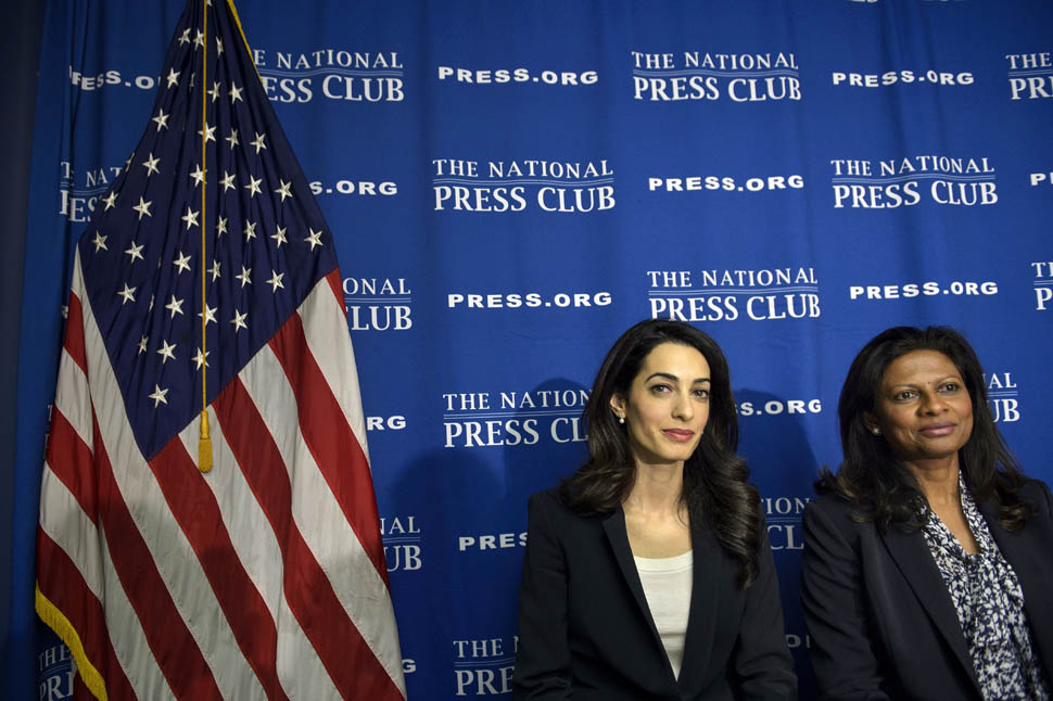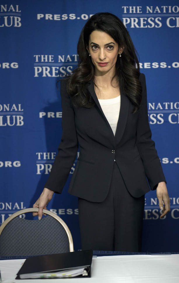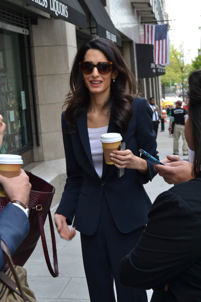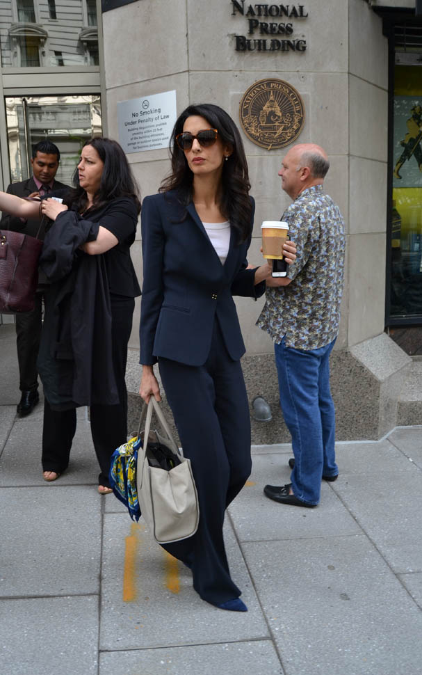 Amal Clooney was in Washington, DC today. She called a press conference to advocate on behalf of Mohamed Nasheed, the former president of the Maldives. She was there with Nasheed’s wife Laila Ali. Just a regular day at work for a human rights lawyer who, apparently, needs help picking out her clothes.