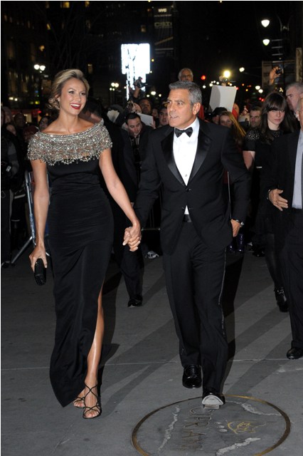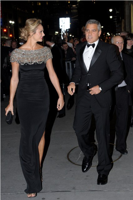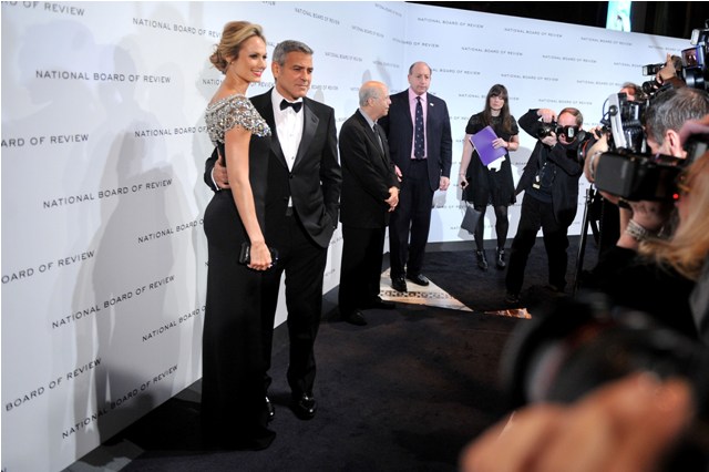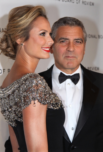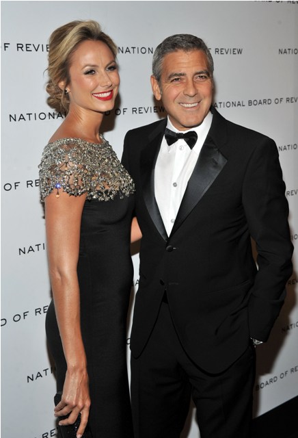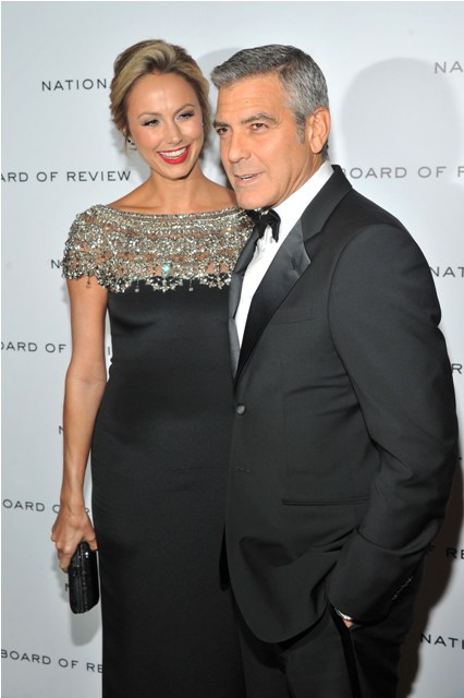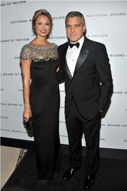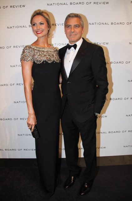 Here are George and Stacy last night at the NBR Awards where he was named Best Actor. Stacy is wearing Marchesa. Which explains why my mother likes it.