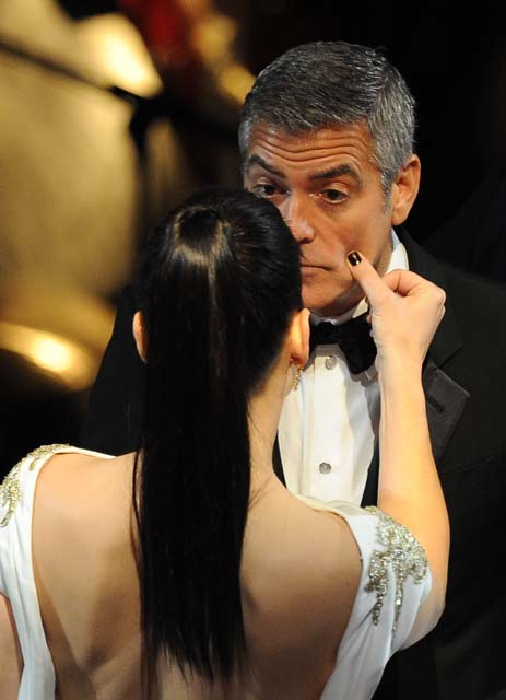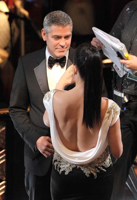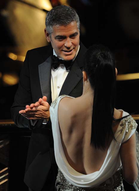 C’est la vie is what Stacy Keibler tweeted last night after George Clooney lost Best Actor to Jean Dujardin. If you use Twitter, um, can you please click here and read some of the comments. Someone actually accused her of being George’s “bad luck”. That’s really, really funny, right? Or am I just being a meangirl?