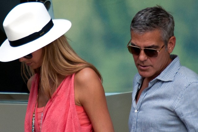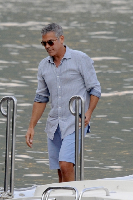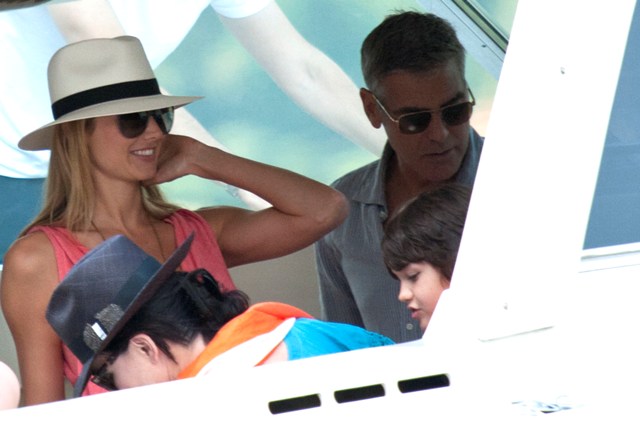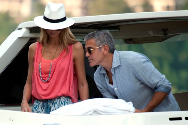 George and Stacy are back at Villa Clooney in Lake Como in Italy. Here they are boating with friends yesterday. Look at him holding those towels. He must be the best host. I would love him to be my host somewhere. If you were to put a list together of Top 5 or Top 10 dream celebrity experiences, wouldn’t Como with Clooney be on there? Along with flying with Angelina Jolie? And, um, riding on the back of Tom Cruise’s motorcycle? That’s my next article idea. I’ll work on it this weekend. Don’t steal it!
