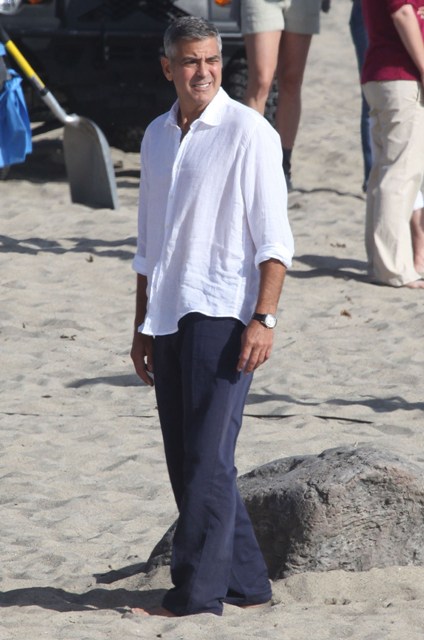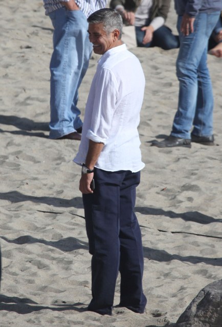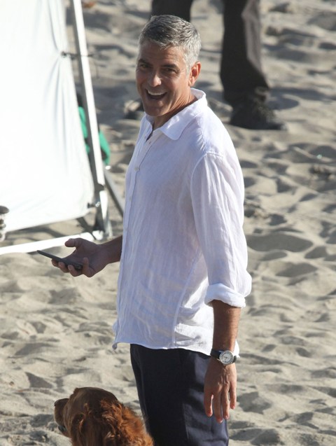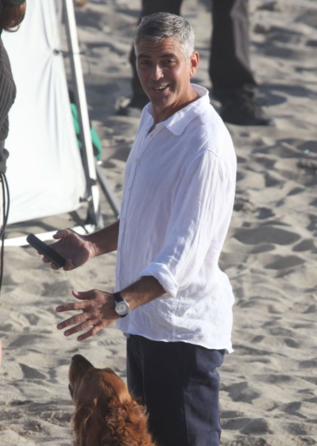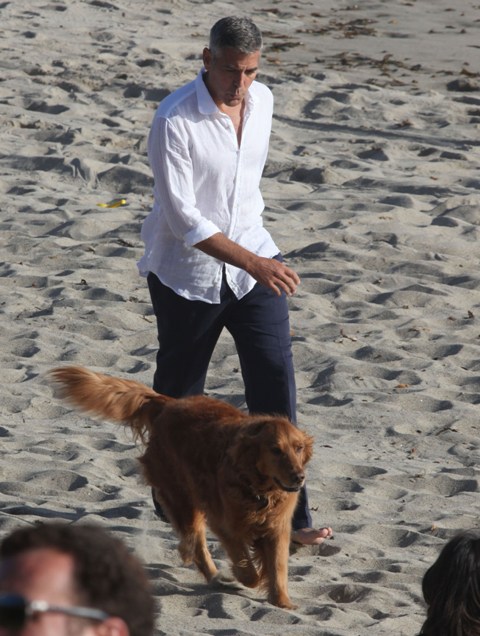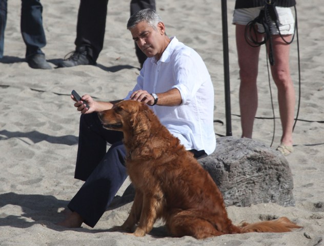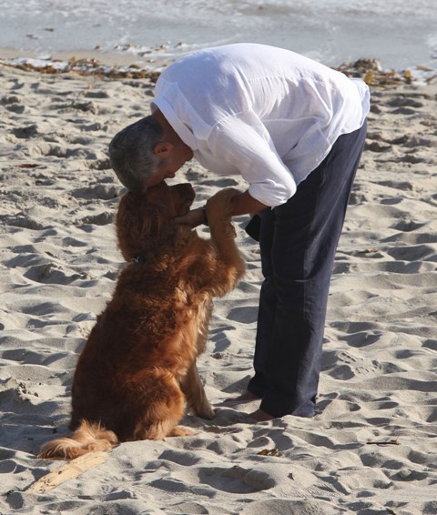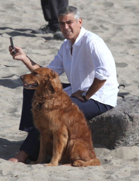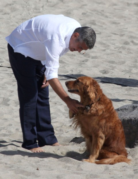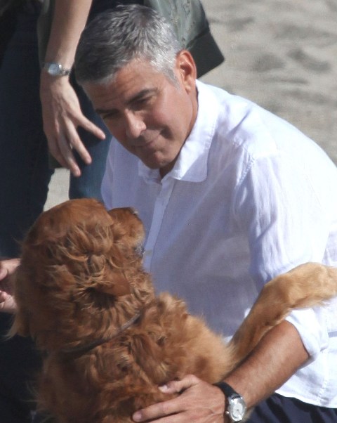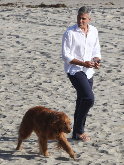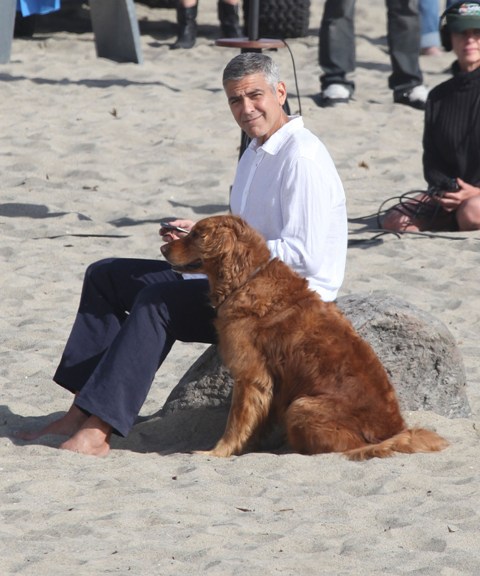 And here’s George Clooney with an actor dog on the beach shooting a commercial the other day. George has his own dog, Einstein so, as you can see, he knows how to talk to them. That’s my weakness: a man who can talk to dogs. Jacek can talk to any dog. Jacek will allow any dog to slobber themselves all over his face. At our house it’s become so pathetic that Marcus and Barney, between 9 and 9:30pm, will find Jacek and ask to be tucked in bed. By tucked in I mean he has to get into bed, lift up the covers like a servant, wait for them to position themselves all over his legs, groom themselves until it’s just right, and leave only when they put their heads down and start snoring, otherwise the whole process has to start over again from the beginning.