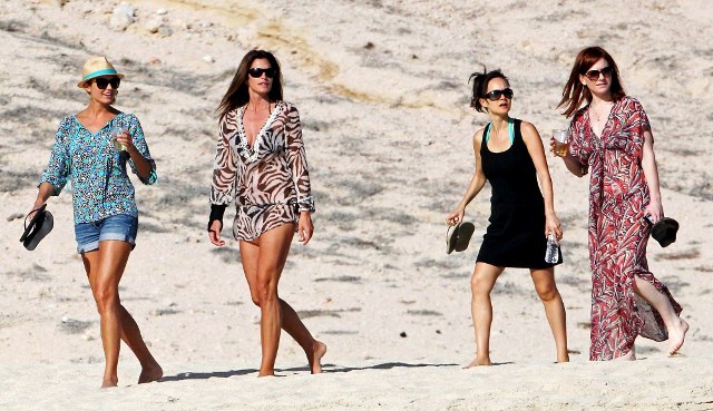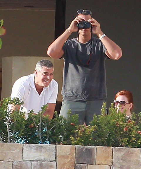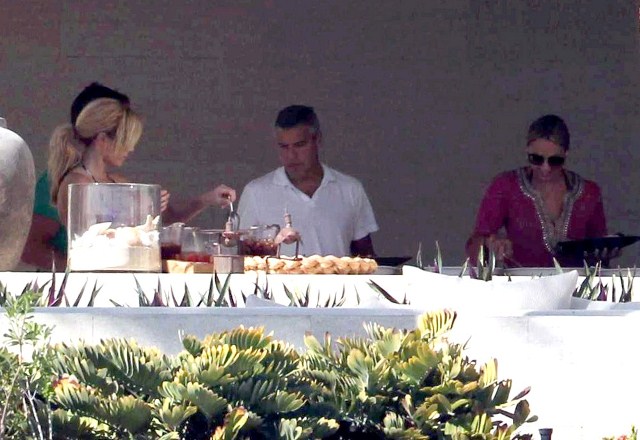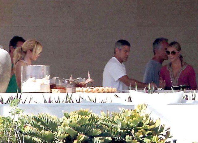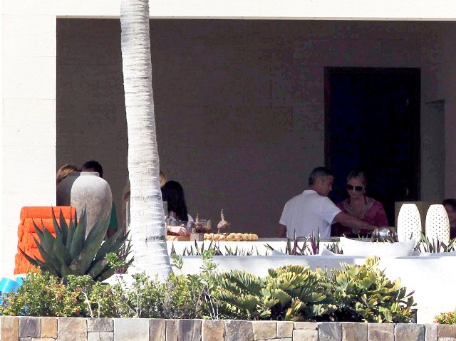 George and his girlfriend Stacy Keibler are in Mexico with all his closest friends. Stacy seems to be getting on well with all the Clooney Crew WAGs, especially Cindy Crawford. But Cindy must be so used to this by now too. Every 2 years or so she’s expected to initiate a new one.