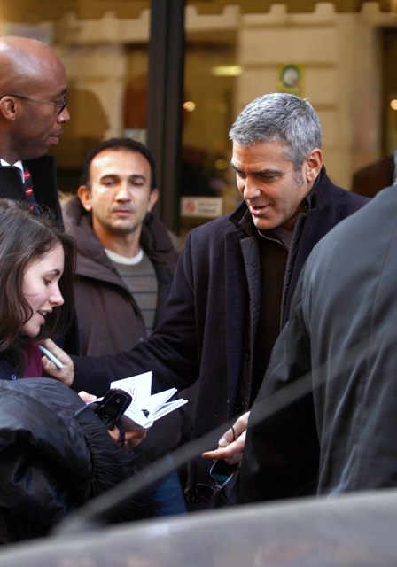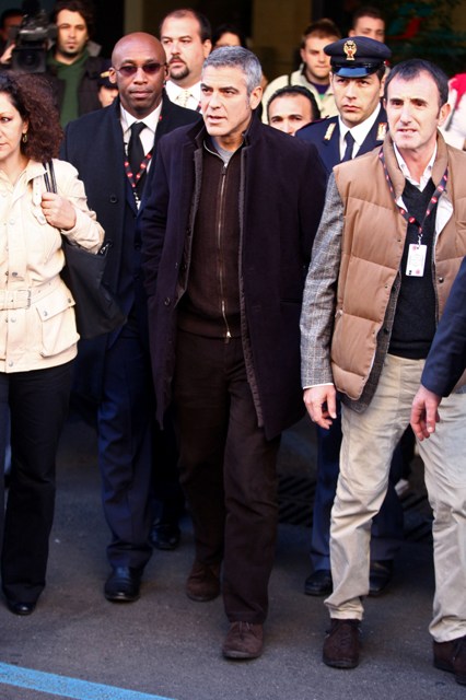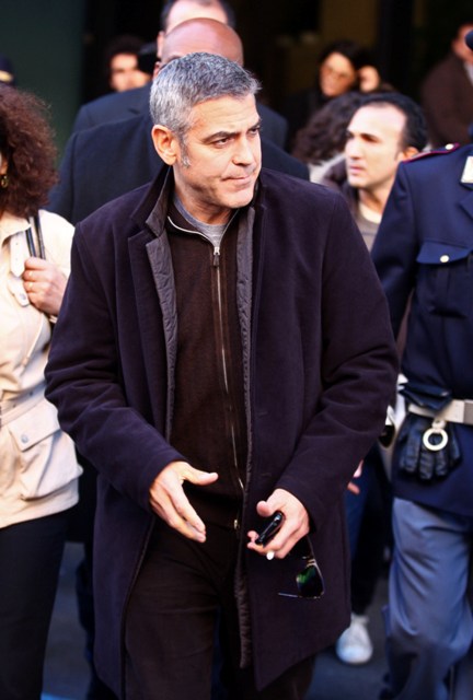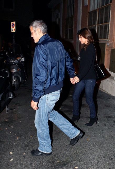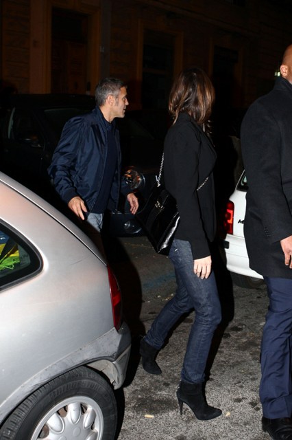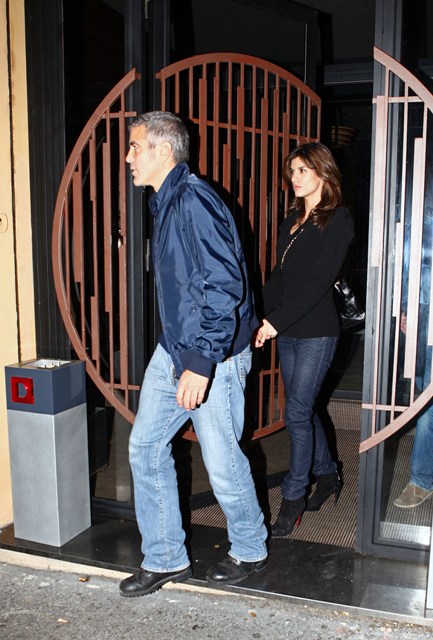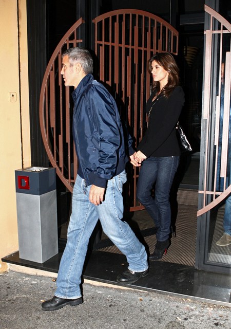 George Clooney took Elisabetta Canalis out for sushi yesterday – photos are below. The Italian Queen is still very much a part of Clooney’s life even though Italian tabloids are reporting that she stepped out on George recently with Clarence Seedorf, a soccer player. Thanks to Giulietta for sending along the link. Apparently Elisabetta was flirting heavily with Seerdorf and Italian gossips are suggesting she may have f-cked him in the hotel.