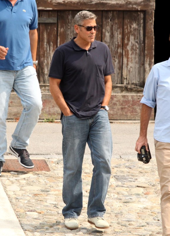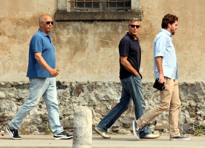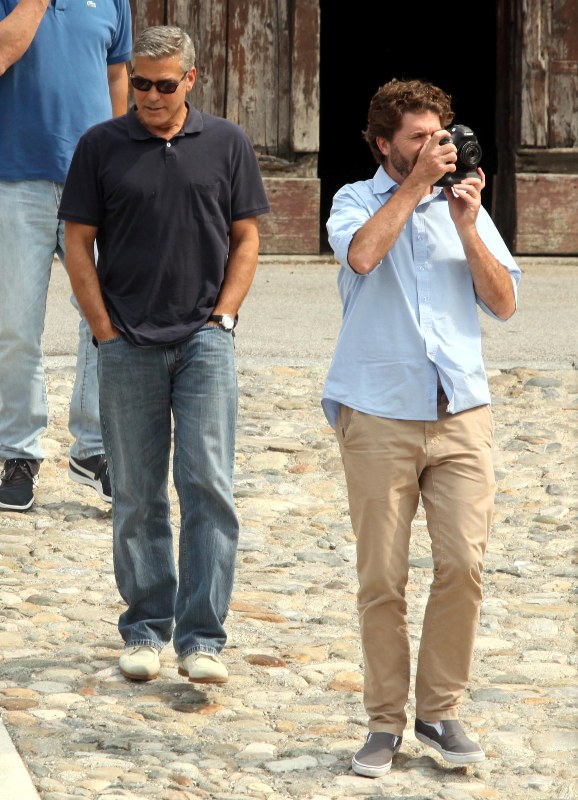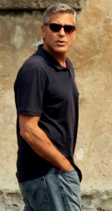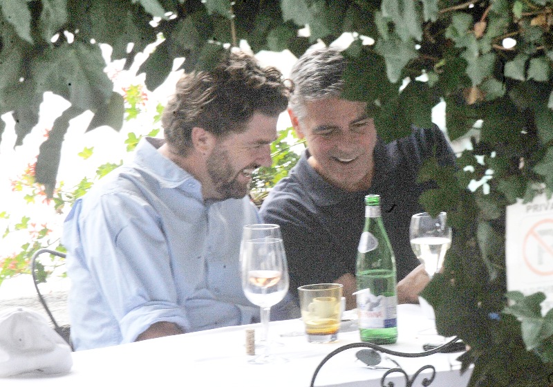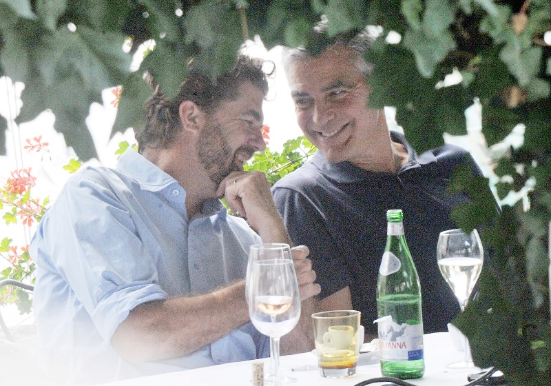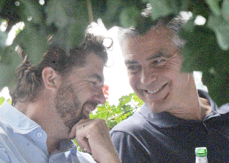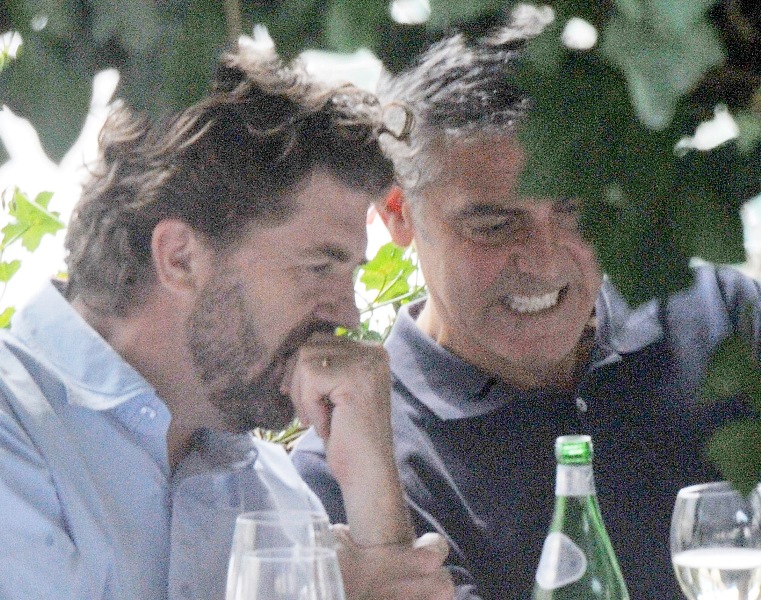 Attached – George conveniently making himself available for photos in Italy today with his boys.