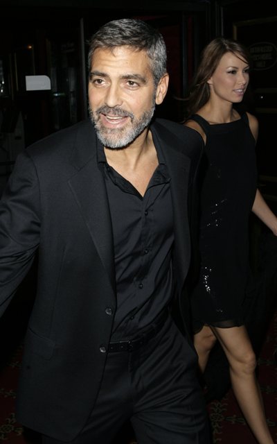 Here’s George and his latest plaything last night at the Jesse James premiere. I remember he was toting around a blonde one in Cannes but kept her well hidden. This one however has earned not one but two very public outings … and counting…and several very pretty new dresses too. The key, I think, is the brown hair. Krista Allen, Lisa Snowdon, they previous prototypes all had brown hair. And while you can scarcely tell the three apart, they all have slammin’ bodies, all extremely attractive, if not a little generic. And the kind of girl who"d take her own apartment over a ring and a proposal. I can see why he likey.