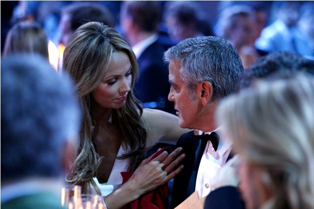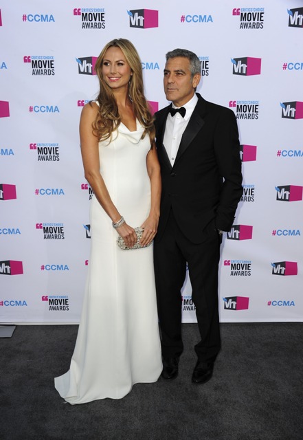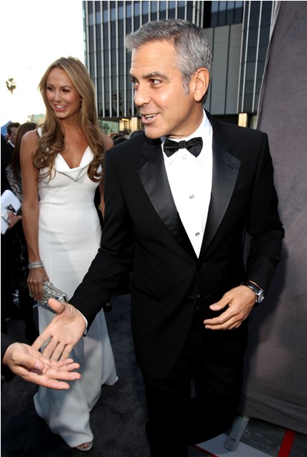 Stacy Keibler wore white. Kinda like Pippa Middleton. A bridesmaid. But I think this is the best way she’s styled her hair. Soft, light, not the mother of the bridey. Check her out in the press room, waiting while Clooney deals with the media following his win, patiently, completely content in her role. The Italian Queen would not have been so accommodating. Keibler will receive an excellent 6 month performance review.
