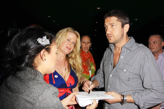 Gerard Butler hit up a Golden Globes gifting suite last night and was approached for autographs from fans who’d gladly let him spray their faces. Have I ever mentioned my Team Spittle hate mail? Not quite as f-cked up as the Twi-Hards or as violent as the Aniston groupies or as self righteous as the Brangelunatics, but firmly ensconced in their very own crazy corner all the same. What distinguishes Team Spittle from the rest of the ardent idiots is the Horny. These bitches are straight up Horny.