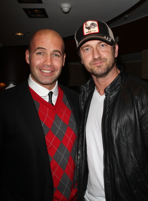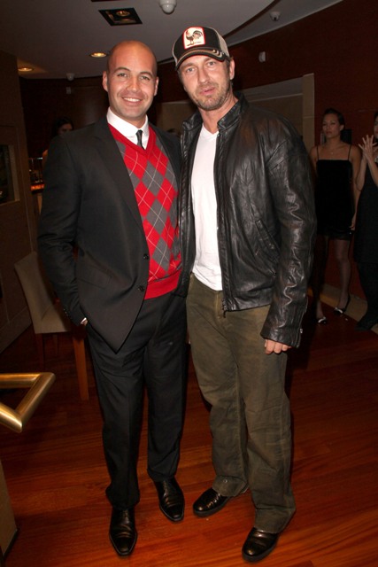Gerard Butler took his spittle mouth to the opening of the Avakian boutique in Beverly Hills last night, happily outnumbered by the ladies. Which might explain the smarmy expression all over his face.