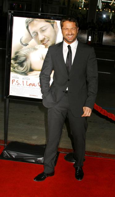 A huge improvement on his appearance from the Victoria"s Secret Fashion Show a few weeks ago when he was orange and bloated and bulging and decidedly unattractive but still…there are a couple of problems. Gerard Butler at the LA premiere of PS I Love You last night.