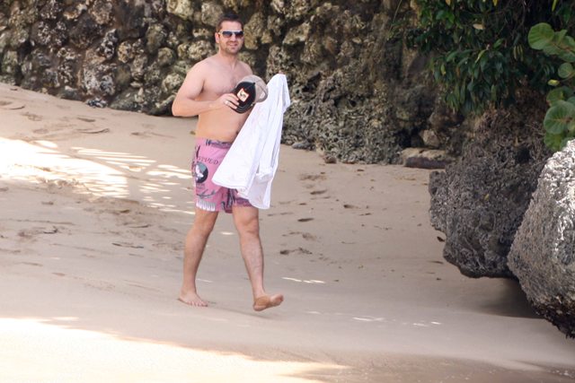 Here he is on holiday in Barbados this weekend. Not sure who the broad is, not sure it matters either. He won’t know her by morning.
