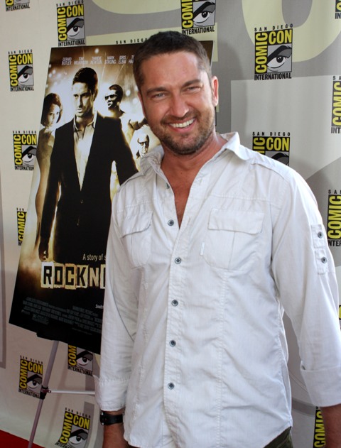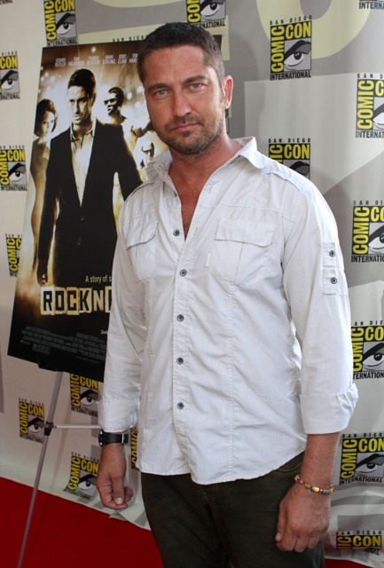 Check out Gerry at Comic-Con yesterday to promote RocknRolla. To be fair, he was apparently delightful with the screaming women in the crowd, humbled by their fevered moans, self deprecating and funny, and absolutely the star of the panel.