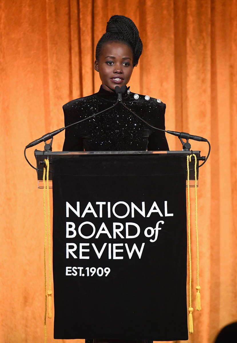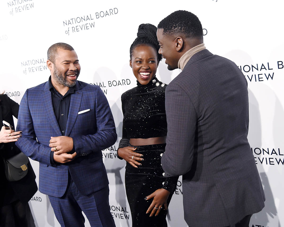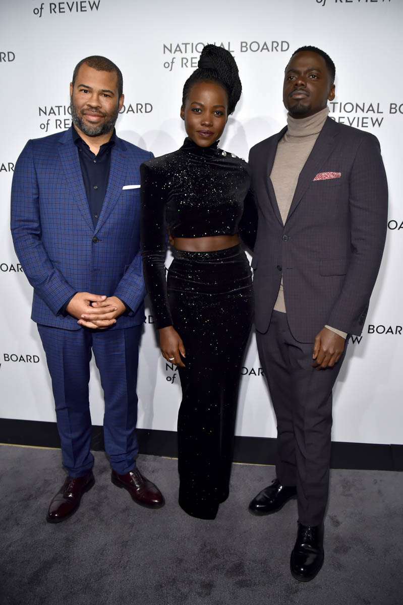 Here's Lupita Nyong'o with Black Panther co-star Daniel Kaluuya and Jordan Peele at the National Board of Review Gala Awards last night.