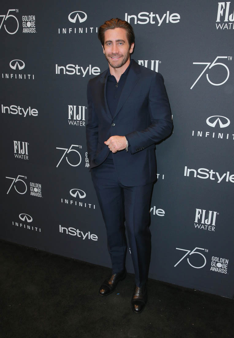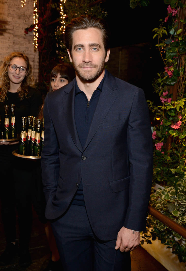 The Hollywood Foreign Press Association celebrated 75 years of the Golden Globes last night. As mentioned earlier, the Golden Globe nominations will be announced on December 11. Many of the contenders attended the event last night, continuing to work the award season circuit. I’ve mentioned a few times now that we’ve been seeing a lot of Jake Gyllenhaal at most of the major award circuit stops. This is the most campaigning he’s done in years, in service of Stronger and his portrayal of Boston marathon bombing survivor Jeff Bauman. Gary Oldman and Daniel Day-Lewis have the top two spots in the Best Actor category and if The Post is any good, Tom Hanks might get in there in third, but the final two slots seem pretty open at this point and Jake, Timothee Chalamet, James Franco, Daniel Kaluuya, Hugh Jackman, and Andrew Garfield are all possibilities.