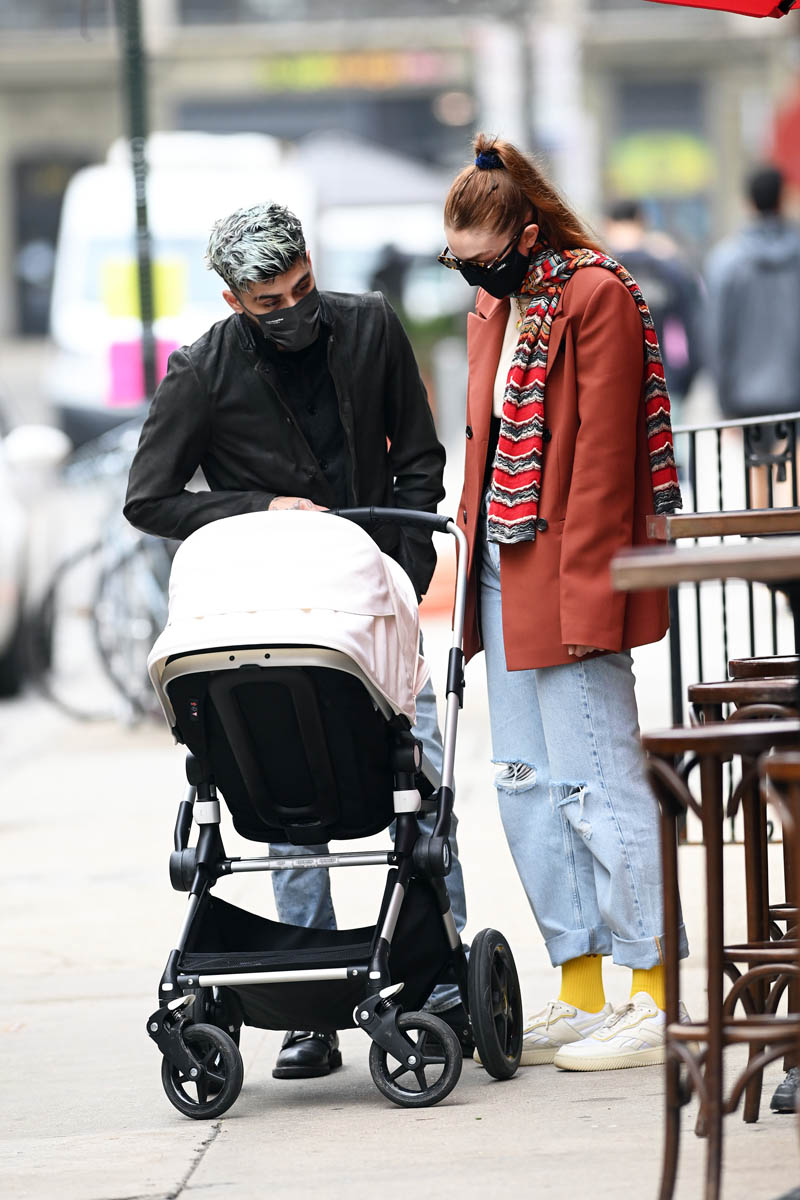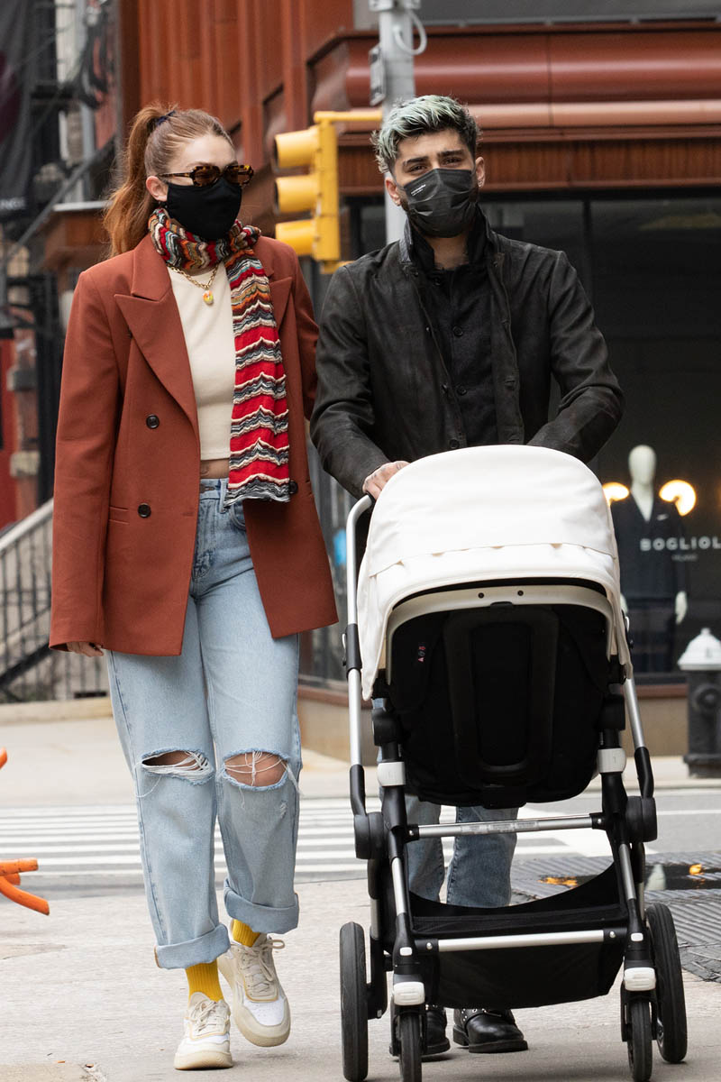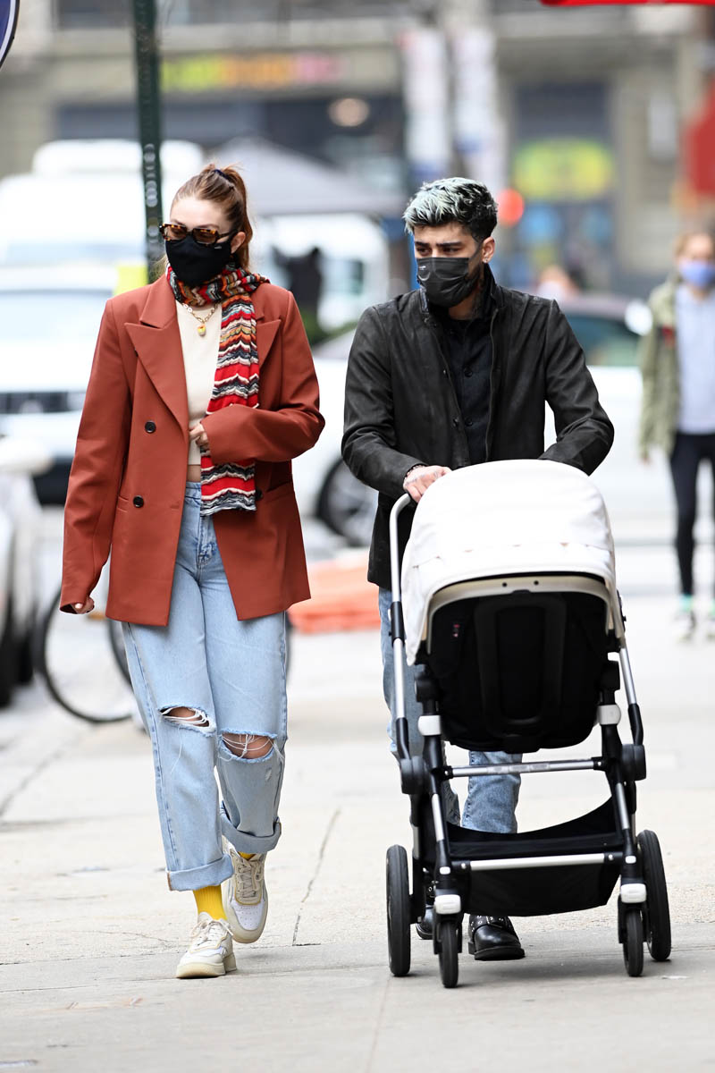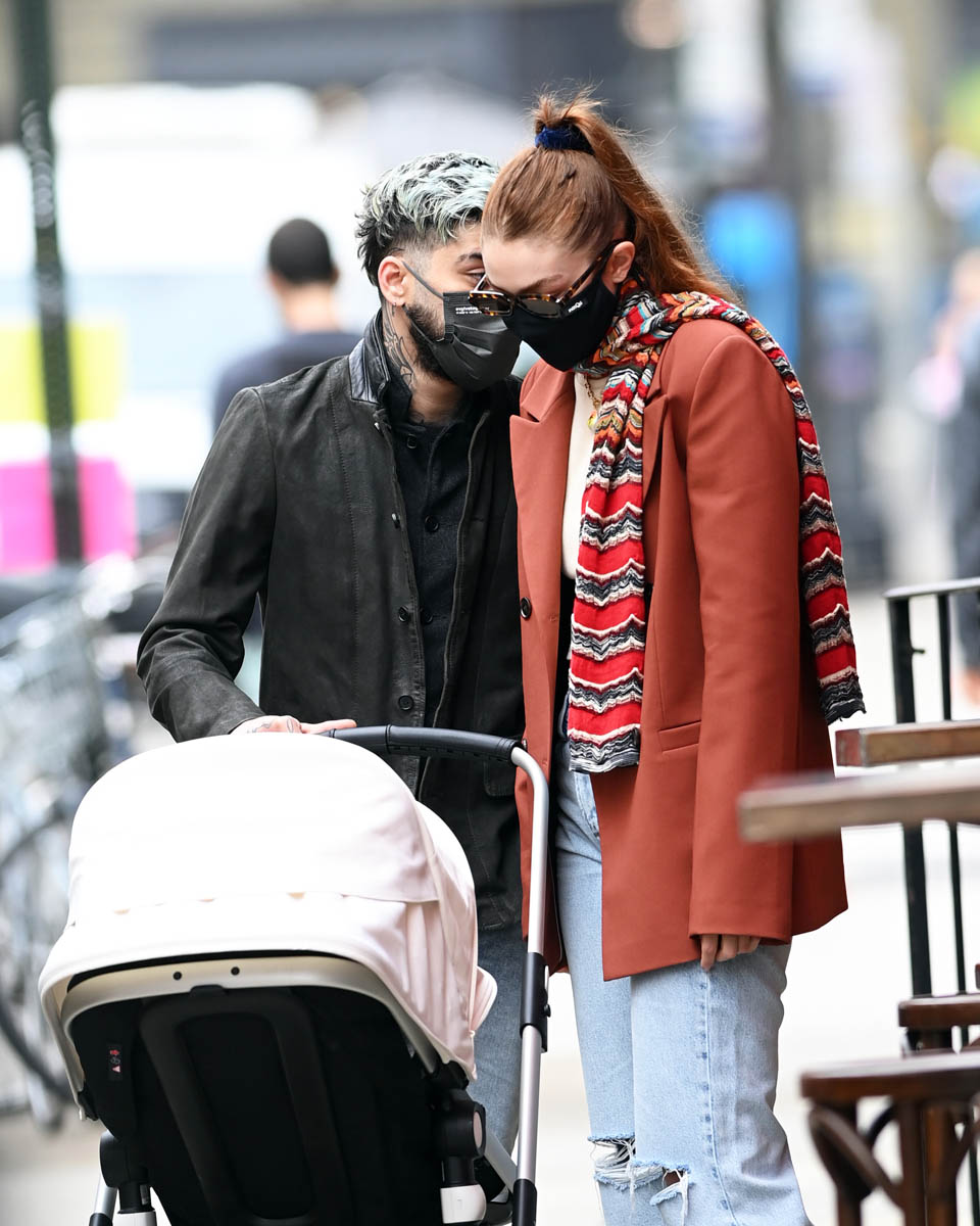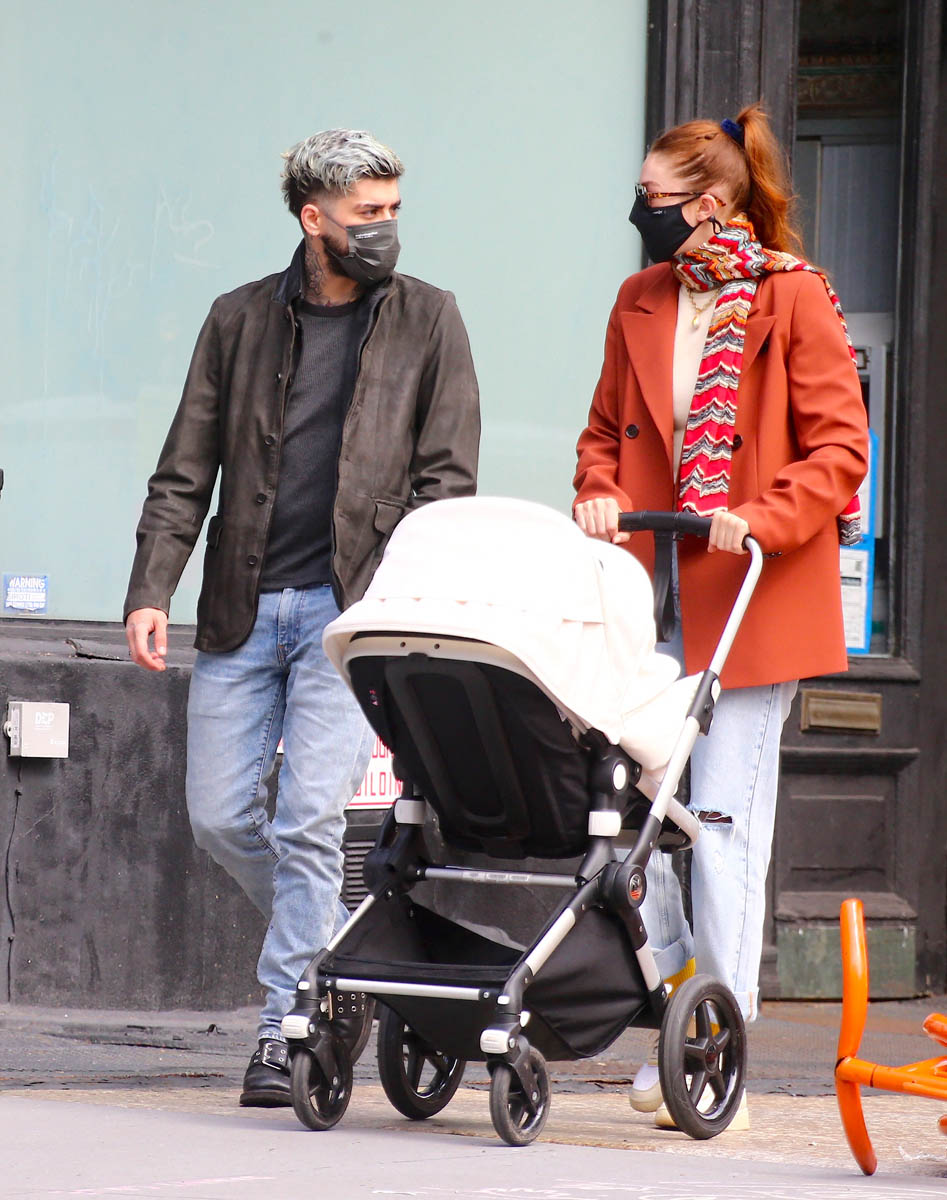 Here they are, out in NYC yesterday on a walk with Khai. And of course, as it always is with Gigi and Zayn, even when they’re masked, a candid sighting of them looks like it’s a magazine editorial. These two are ridiculously photogenic. And they seem happy, at least that’s what I can see in Zayn’s eyes. I mean, even if it’s not bliss (as in newborn hours and lack of sleep) they’re obviously not unhappy. They’re obviously very much together, a family unit now, having spent a year in the most intimately special way.