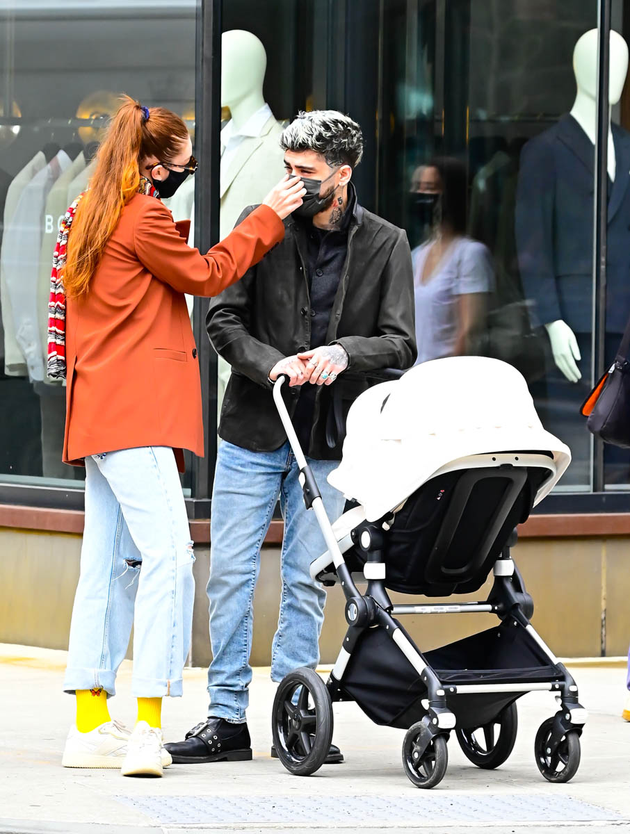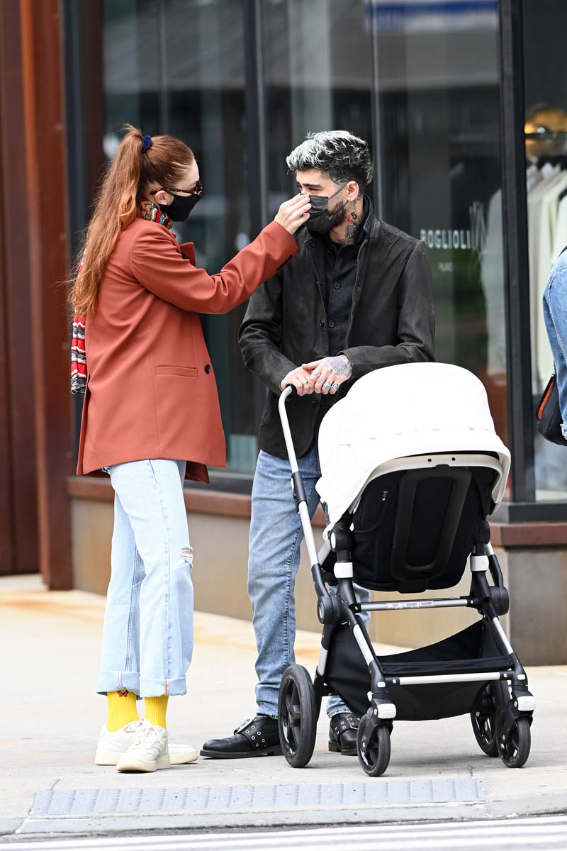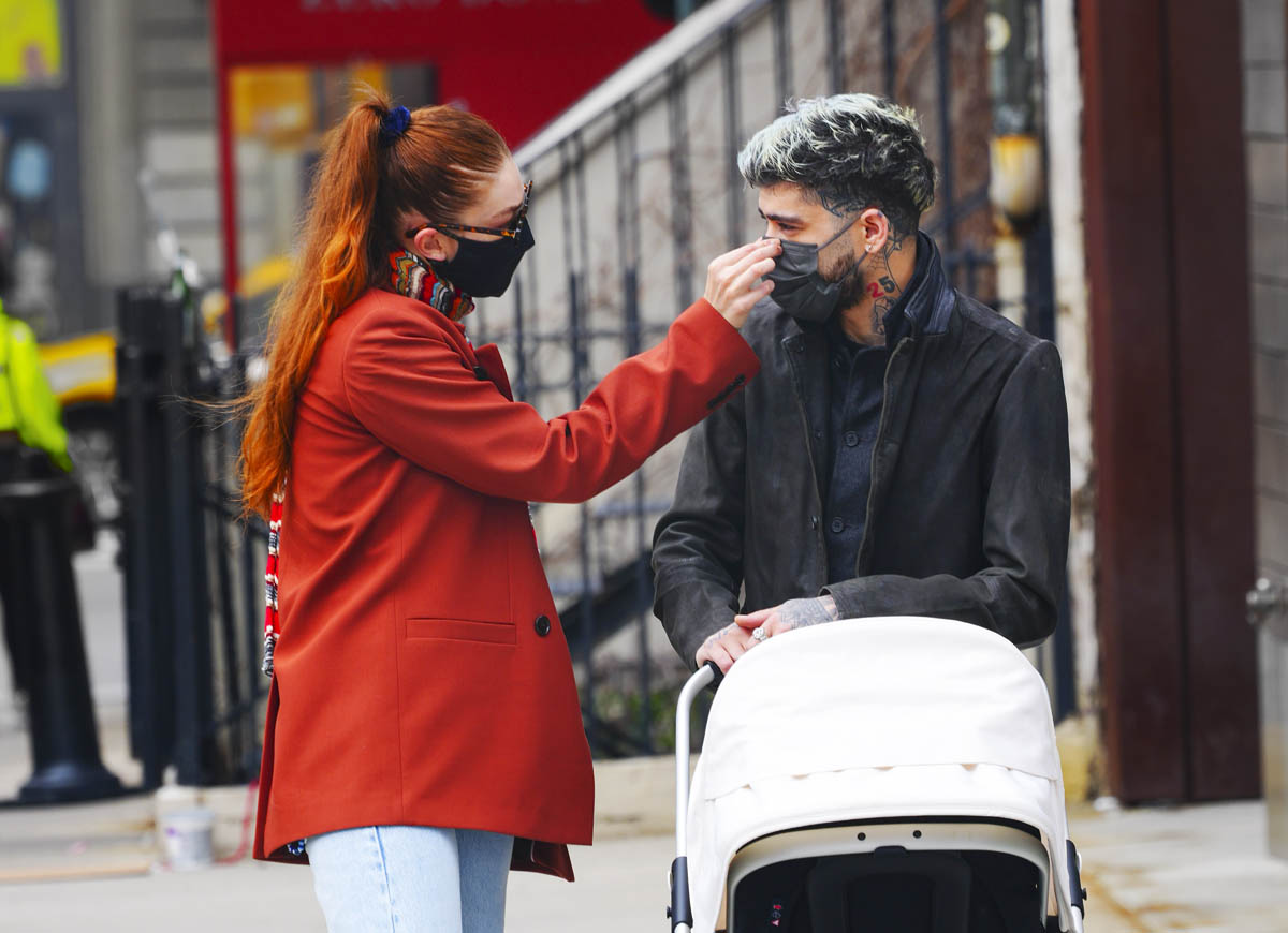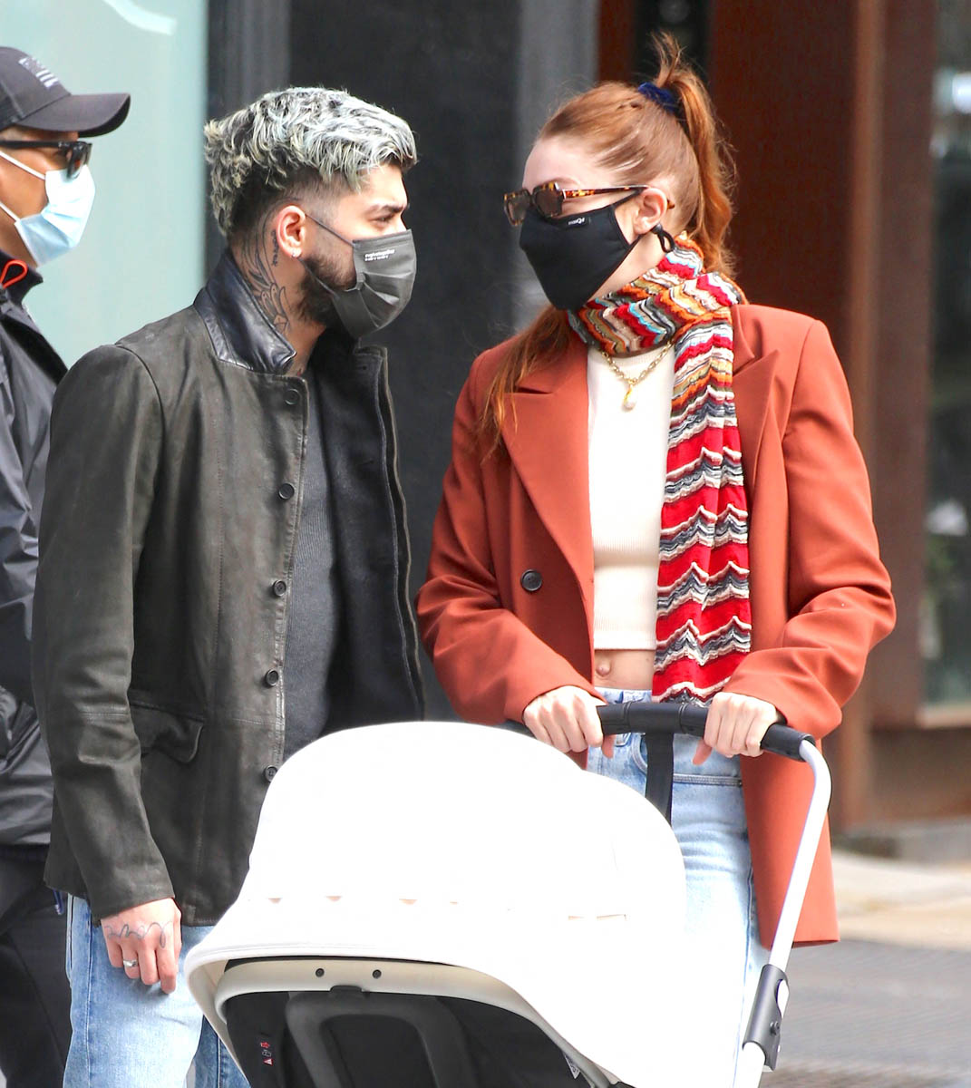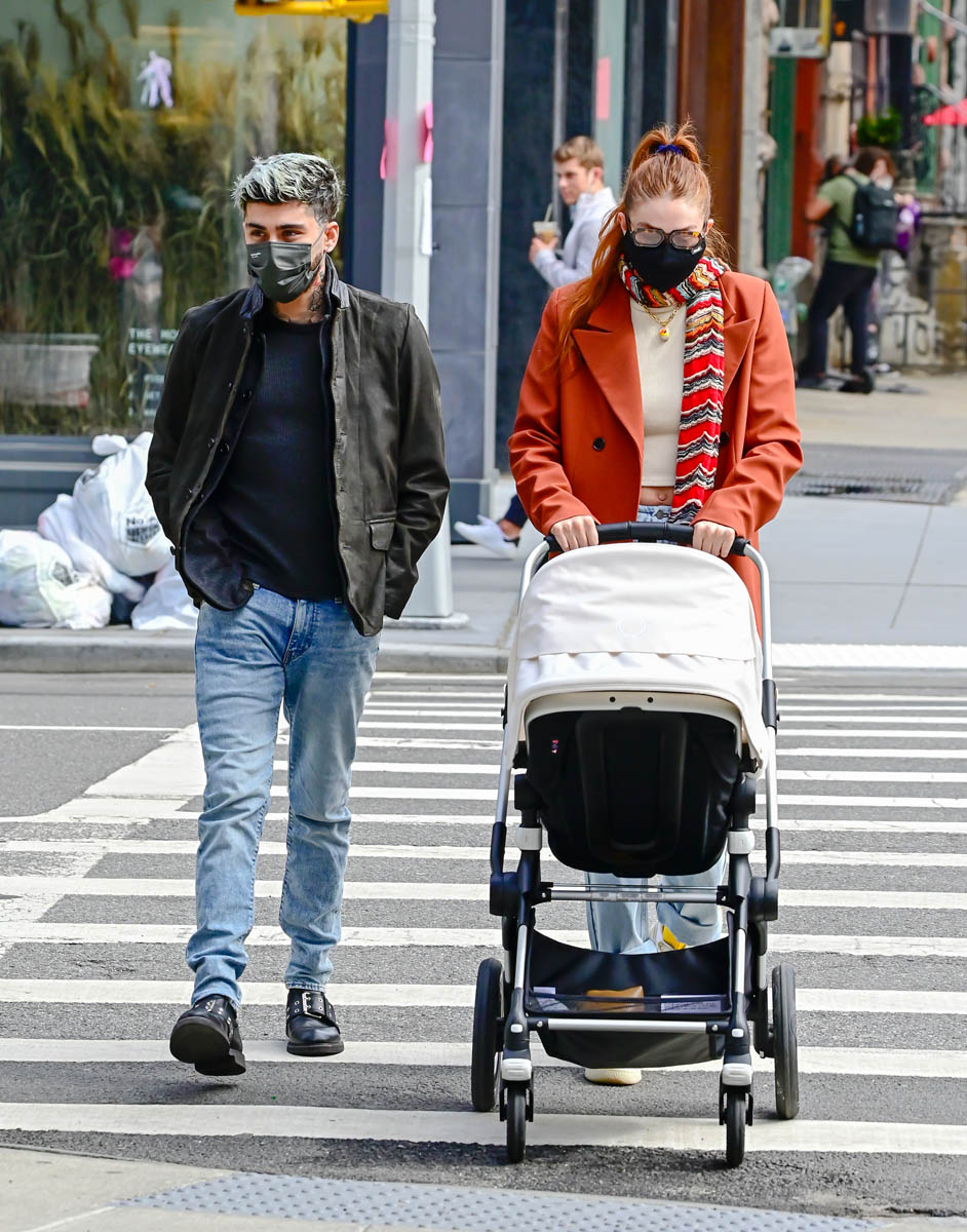 Here they are, out in NYC yesterday on a walk with Khai. And of course, as it always is with Gigi and Zayn, even when they’re masked, a candid sighting of them looks like it’s a magazine editorial. These two are ridiculously photogenic. And they seem happy, at least that’s what I can see in Zayn’s eyes. I mean, even if it’s not bliss (as in newborn hours and lack of sleep) they’re obviously not unhappy. They’re obviously very much together, a family unit now, having spent a year in the most intimately special way.