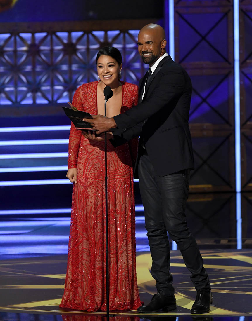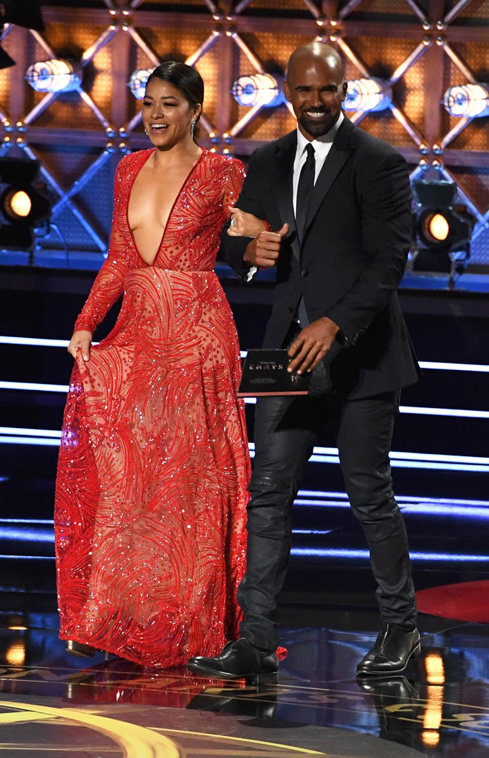 Gina Rodriguez makes it look easy. Even when presenting with Shemar Moore, who seems like one of those dudes who gets more attention than he’s entitled to no matter what project is happening, she’s charming, cool enough, in a spectacular dress that makes lesser publications think truly terrible ‘Virgin? IDK’ headlines are okay, and in general is a person you’re delighted to see at all of these things without getting sick of.