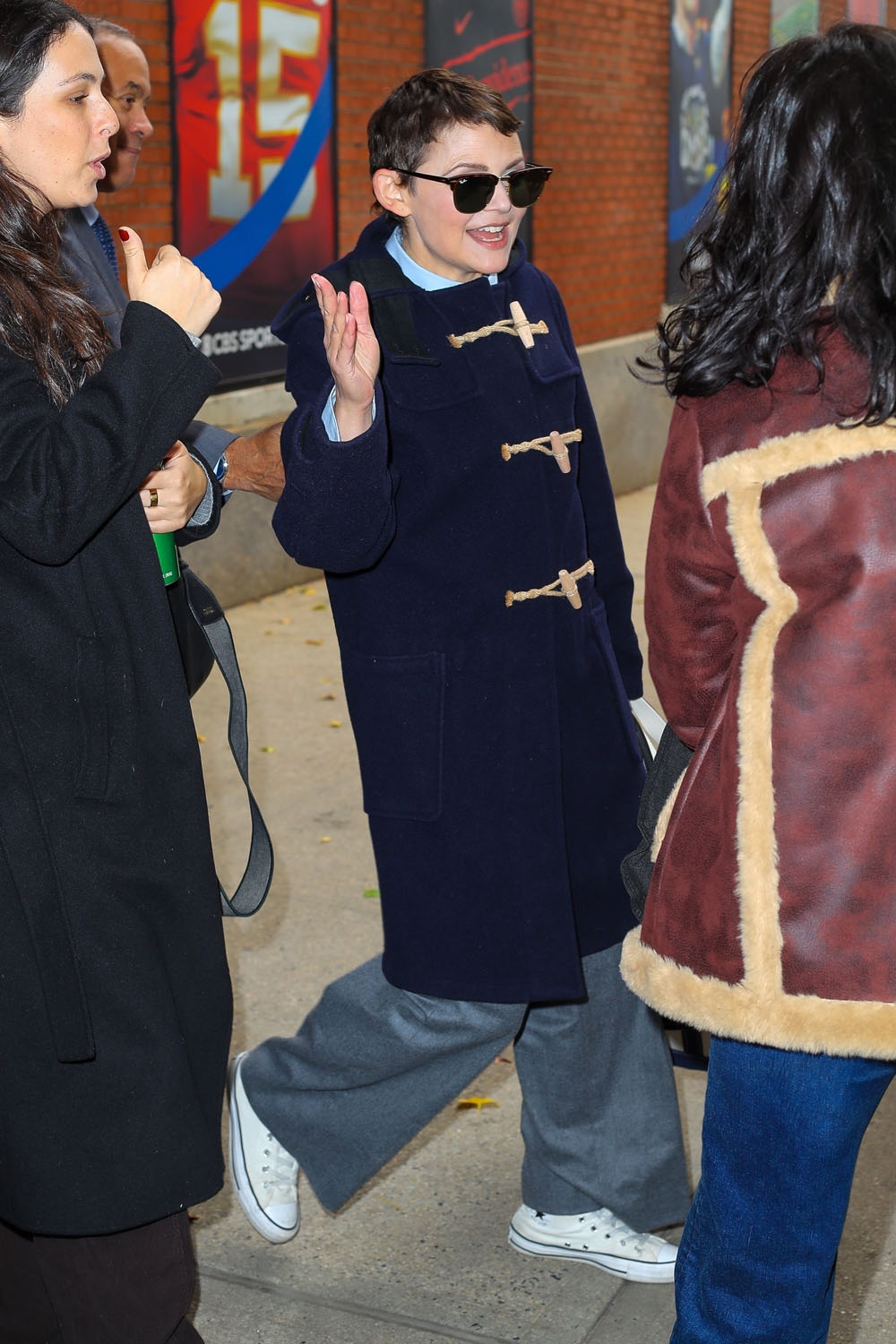 And what I mean by that is that I love toggles, but if there are toggles on a coat, or a jacket, whatever, the toggles should stand out. In my opinion, there’s no sense in putting black toggles on a dark coat because why wouldn’t you want the toggles to be seen? Ginnifer’s coat understands the assignment.