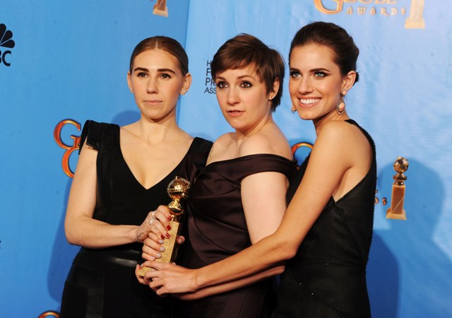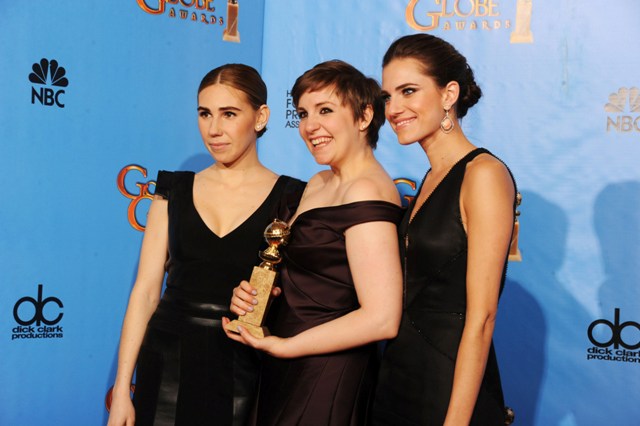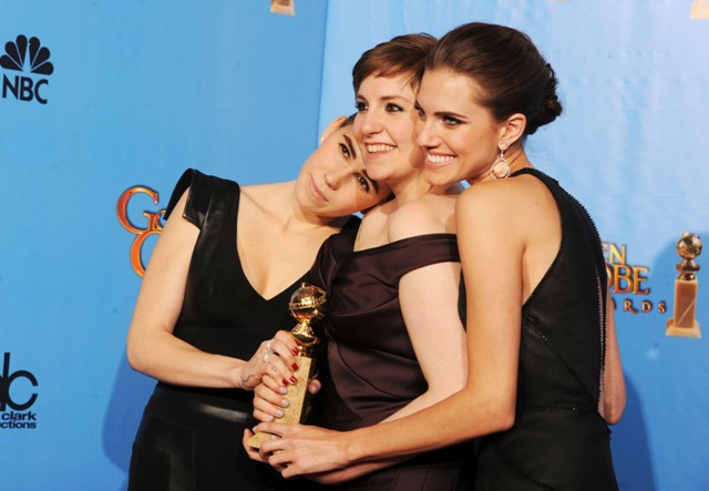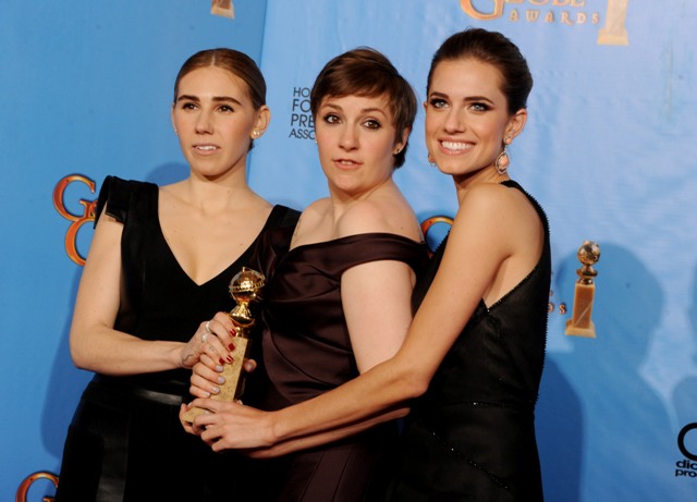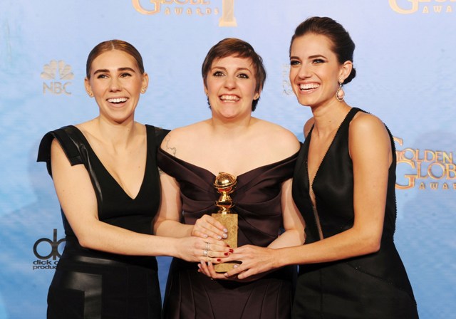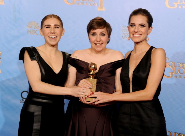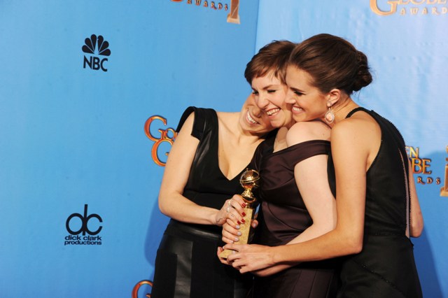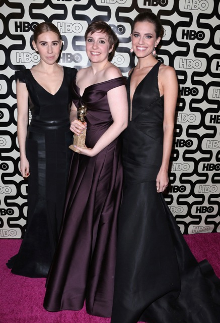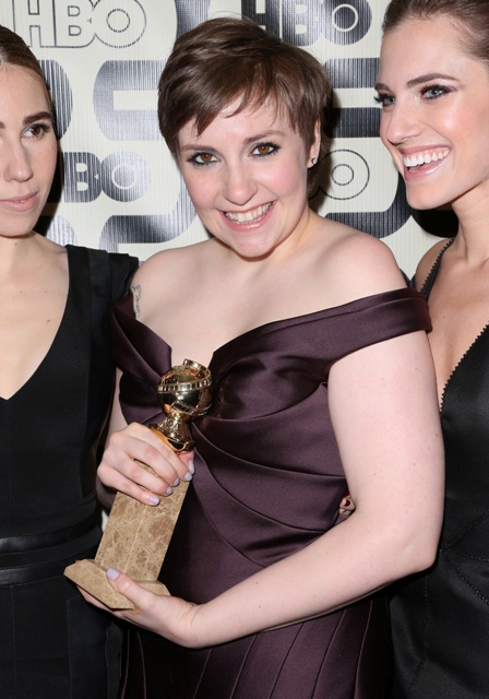 Attached -- photos of the cast of Girls celebrating their Golden Globe win.