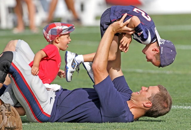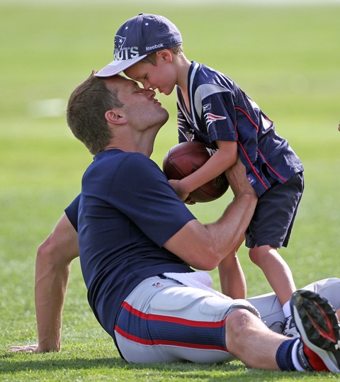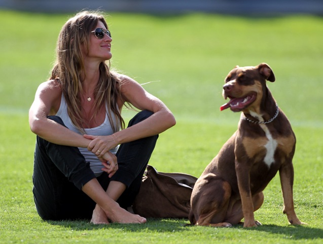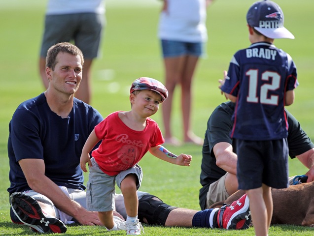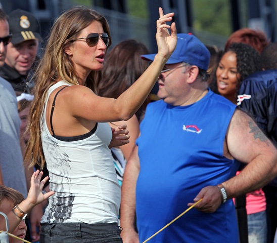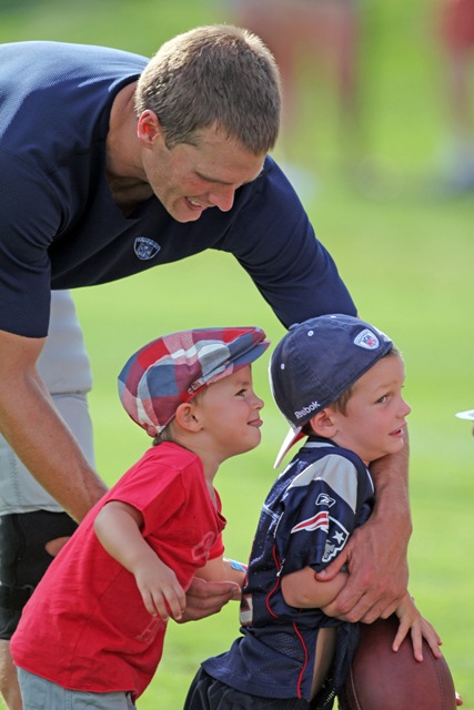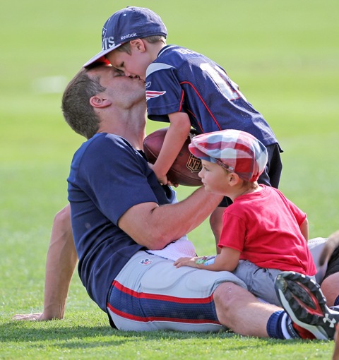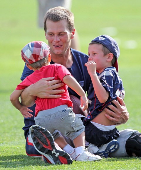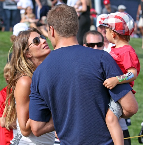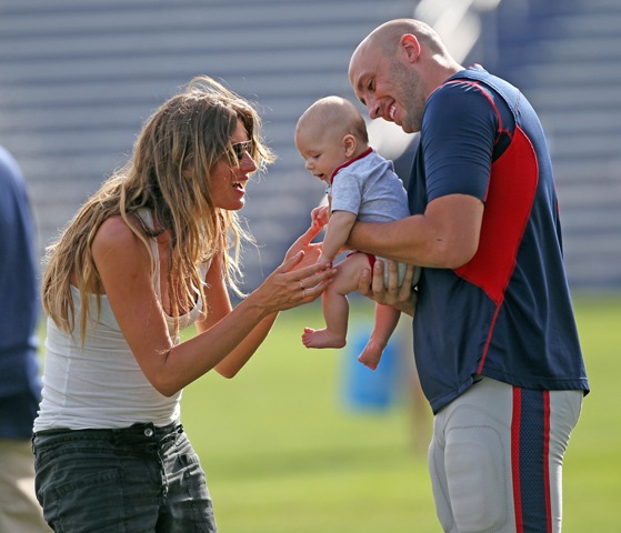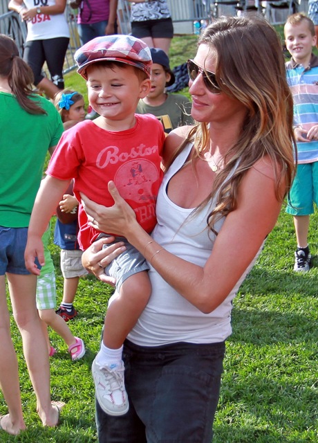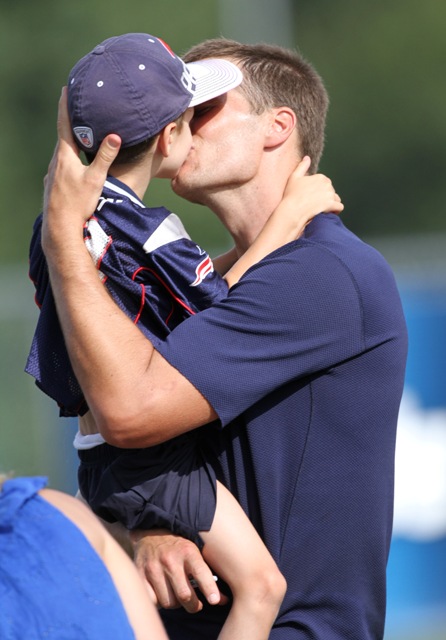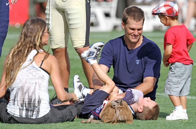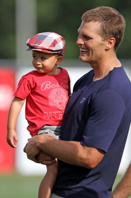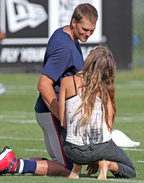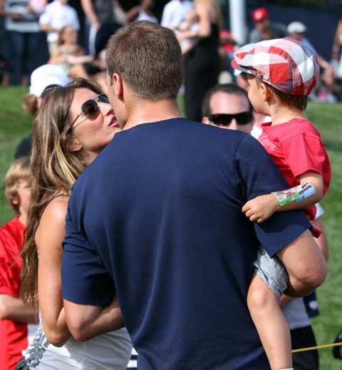 I don’t know if it was officially family day yesterday at Patriots training camp but there were a lot of dogs and babies and WAGs running around including pregnant Gisele Bundchen who came along with Jack and Benjamin to see dad at work.
