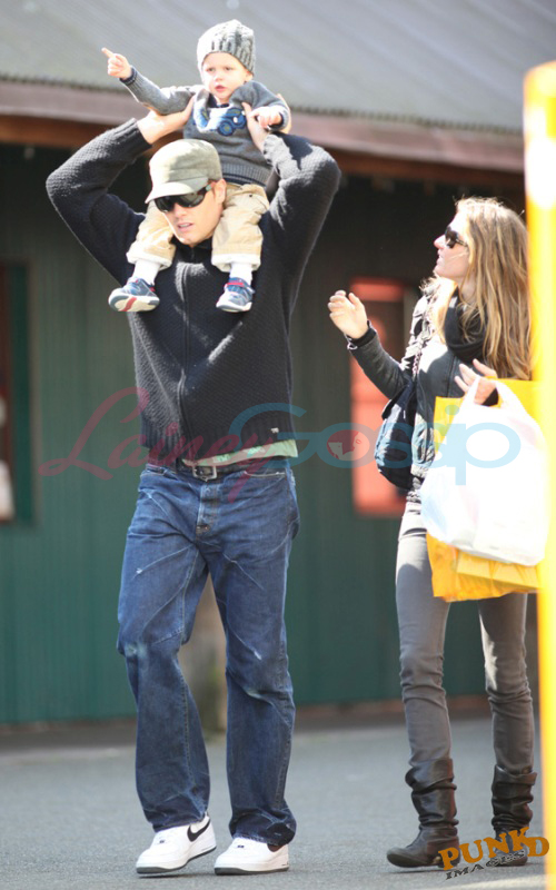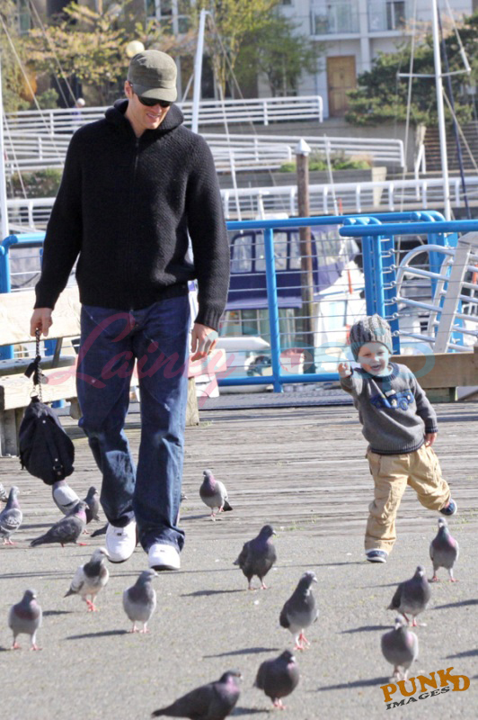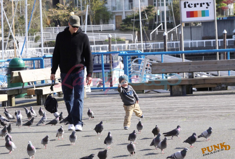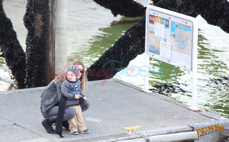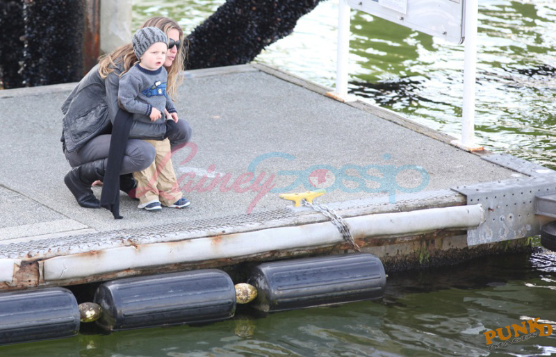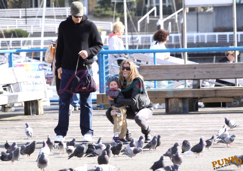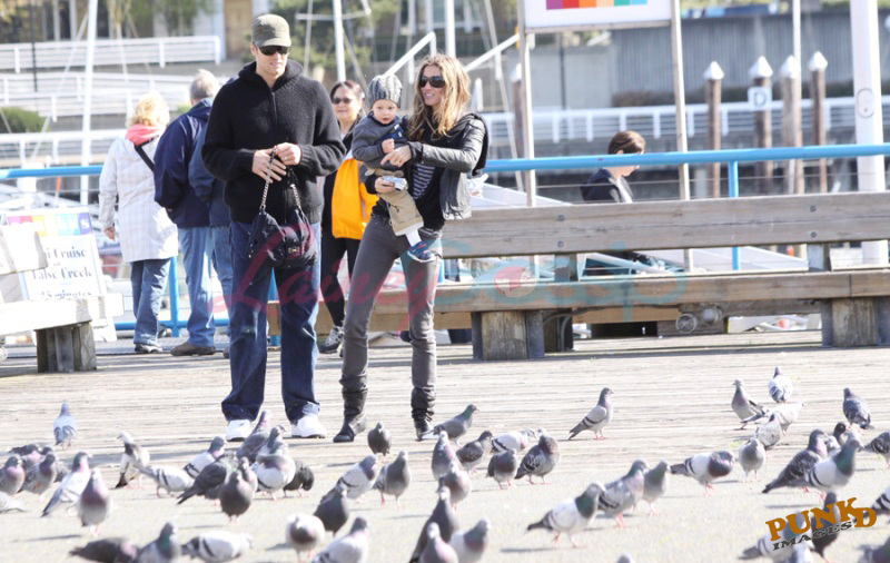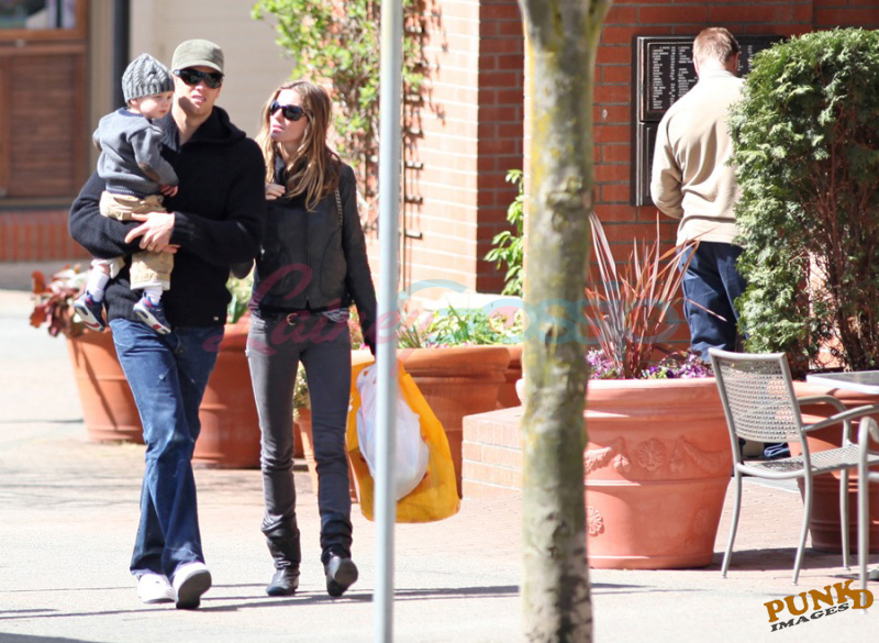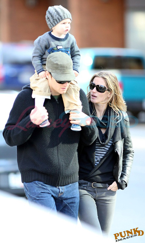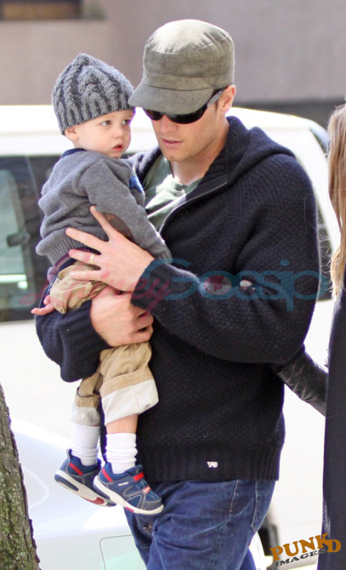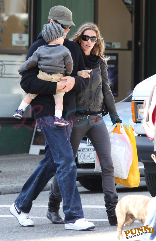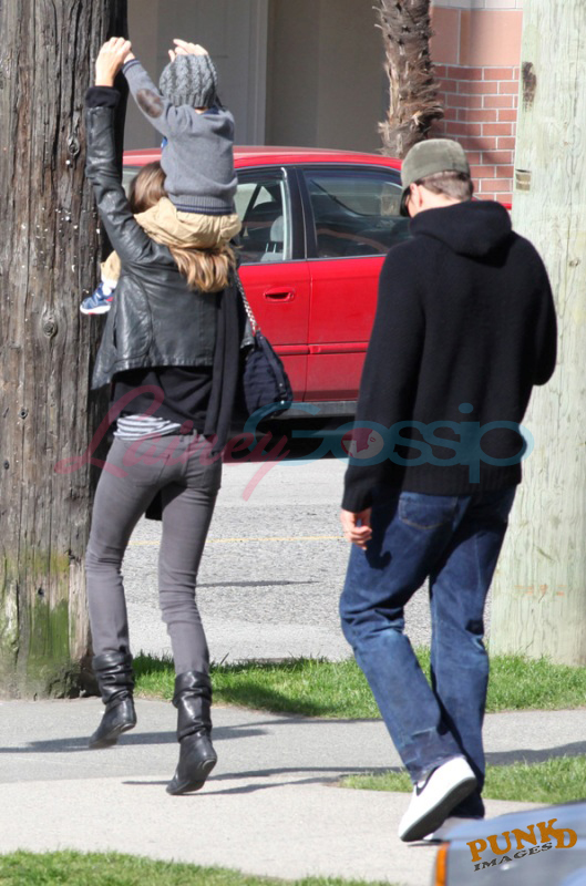 Bridget Moynihan is in town shooting Ramona and Beezus with Selena Gomez. So newlyweds Tom Brady and Gisele Bundchen flew in for a couple of days to spend time with the baby. It was beautiful in Vancouver on Friday. They spent the afternoon exploring the city, took the ferry over to Granville Island, chased pigeons on the pier – as you can see from these exclusives, they’re sickeningly gorgeous all three.