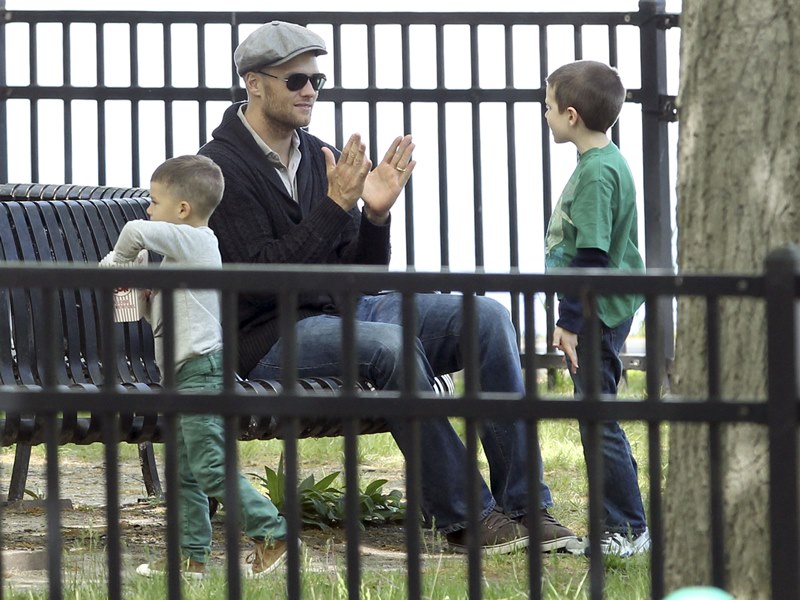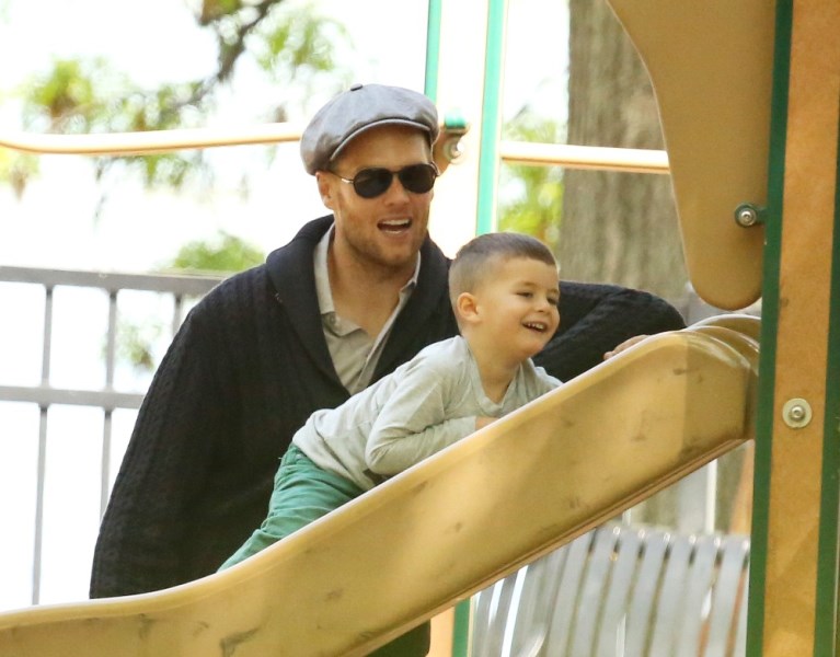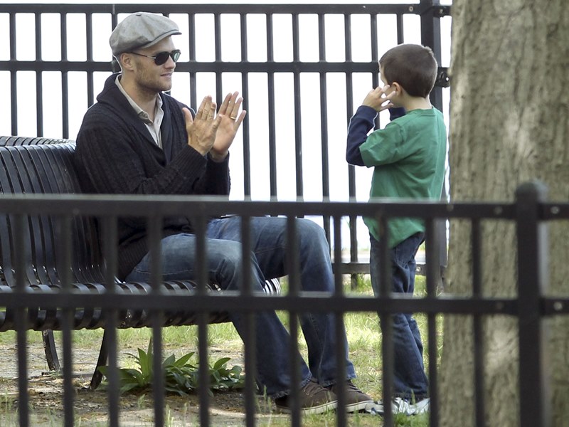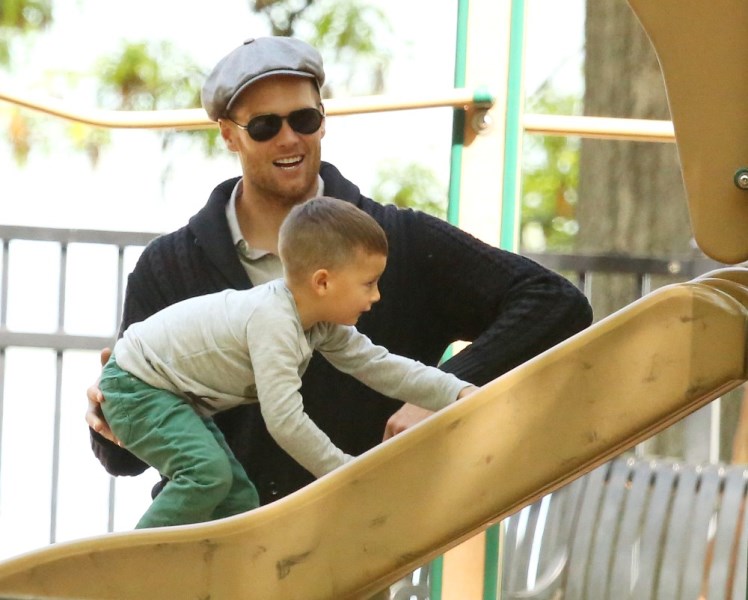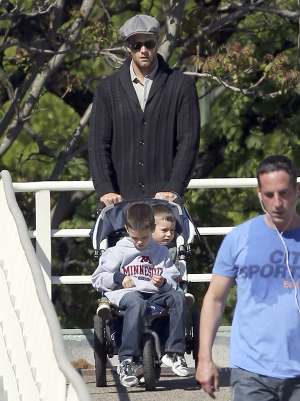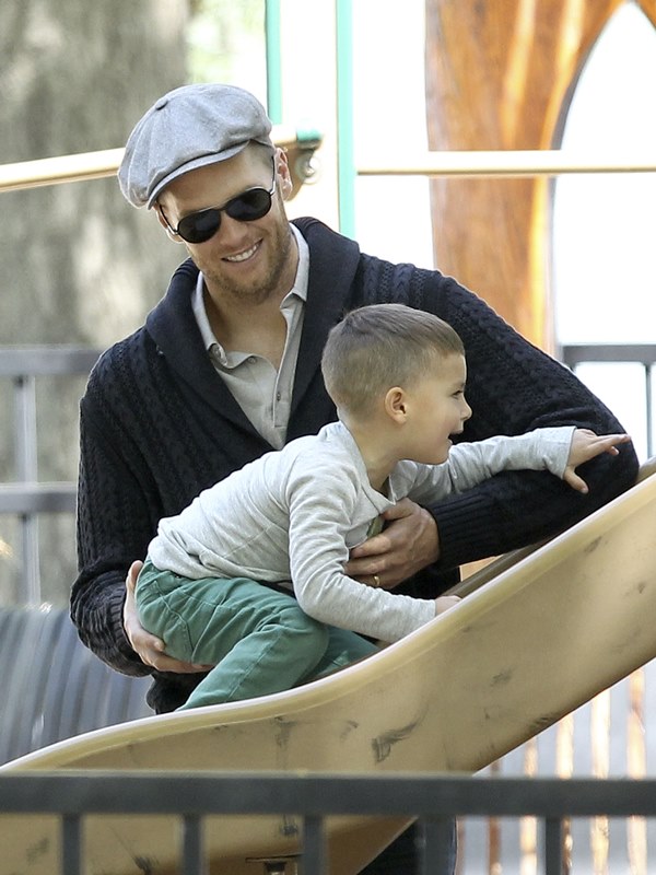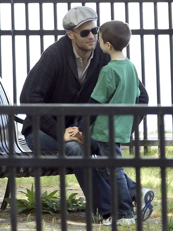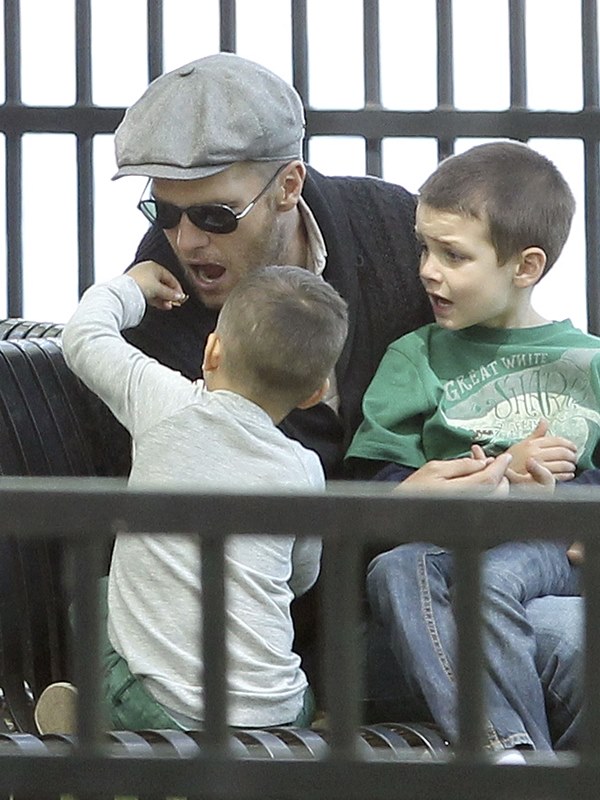My favourite of these photos are the ones in which Tom appears to be playing patty cakes with son Jack. Until TMZ or some other misogynist decides he’s a pussy for carrying Gisele’s bag and shoes and teaching his boy how to bake. Click here if you missed that post. What could possibly be more MAN than a hall of fame quarterback and NFL legend who’s gentle and caring and helpful and loving to his wife and children?