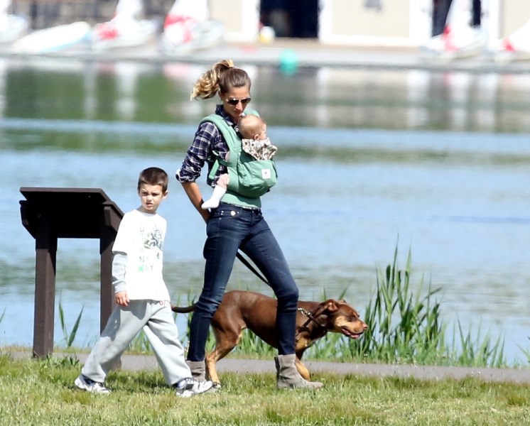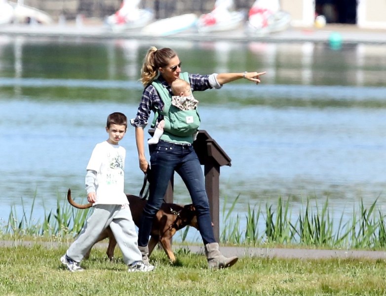 It was family weekend in Boston for Gisele Bundchen and Tom Brady. They were both at his sister’s graduation. And then they went to the park where there were kisses for everyone -- Tom, Gisele, the babies, the dog. Vivian looks a lot like her brother Benjamin, non?