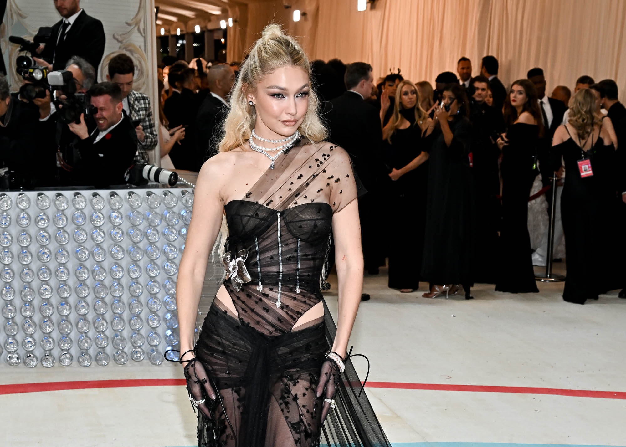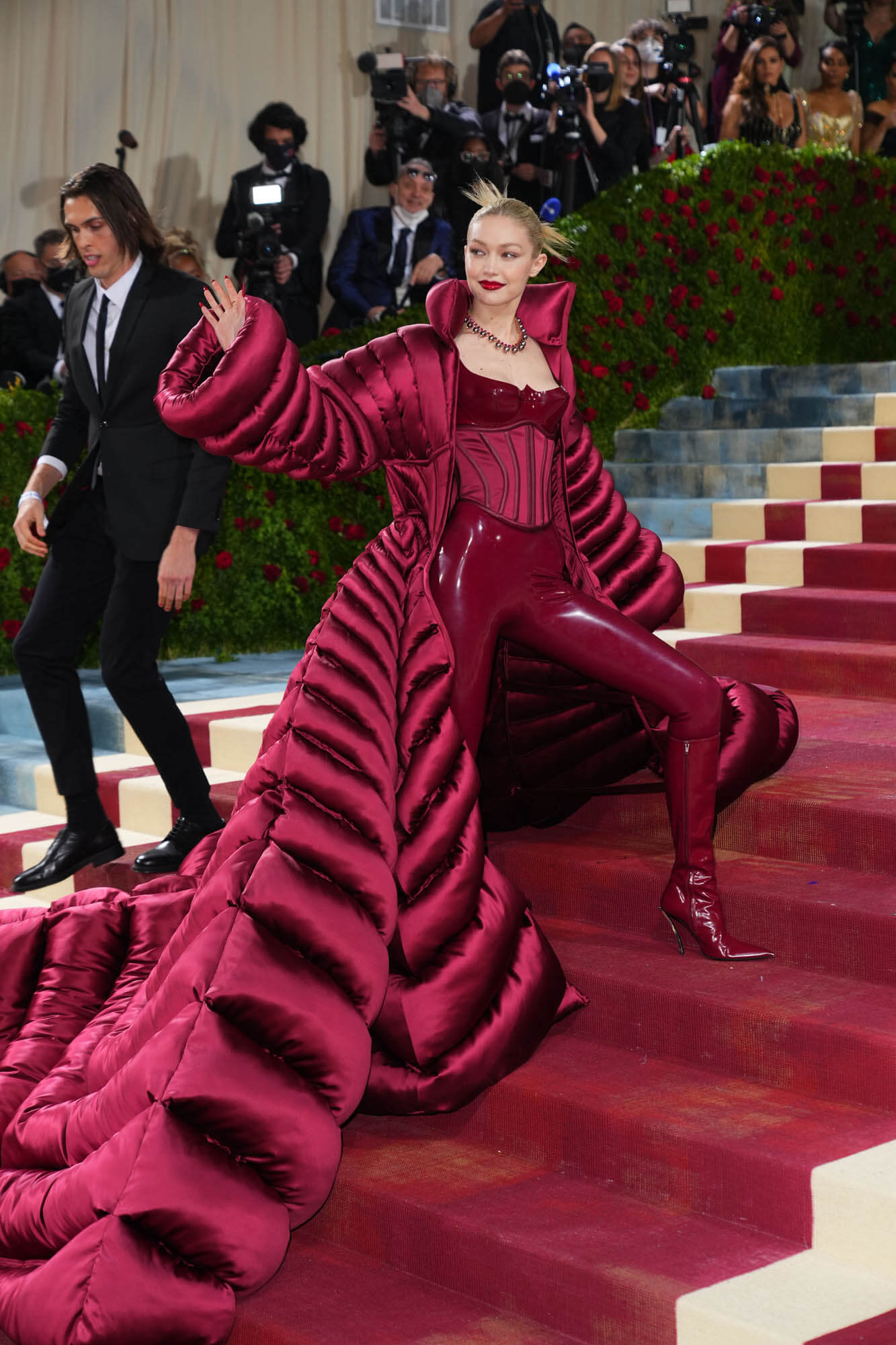 While we’re here, we might as well continue with the Leo connections and Gigi Hadid who was one of my biggest letdowns of the night. Because remember Gigi last year at the Met Gala? In that red latex corset with the pants and the puffer coat?! It was UNREAL.