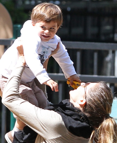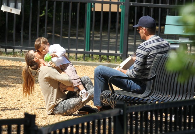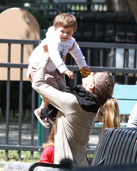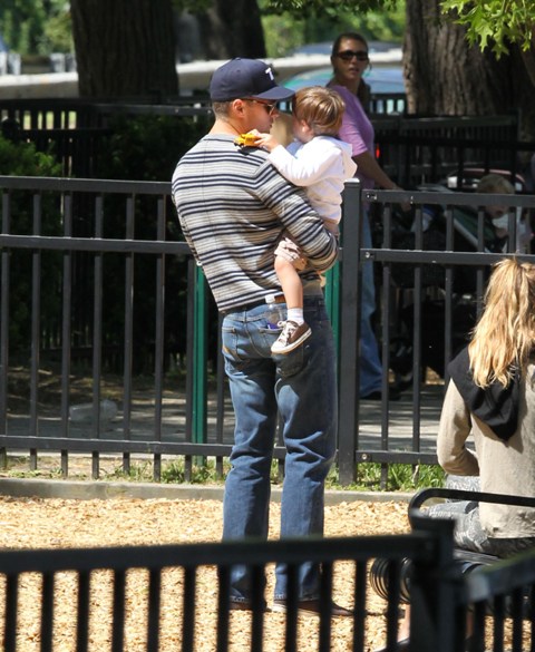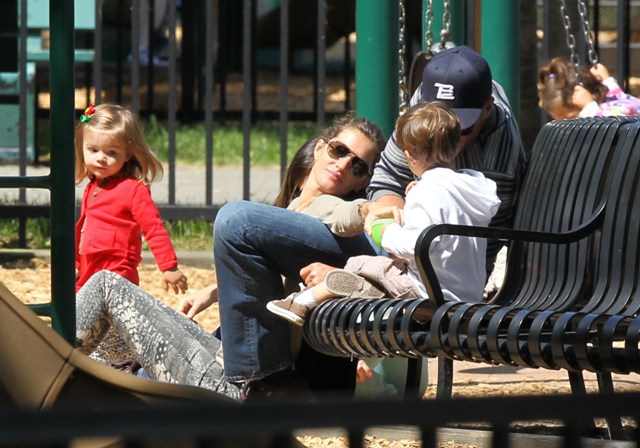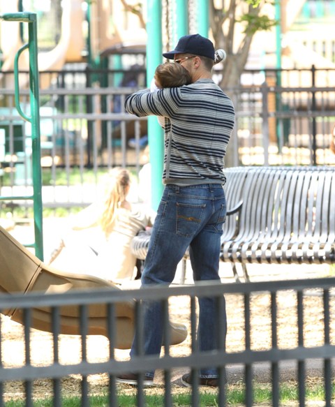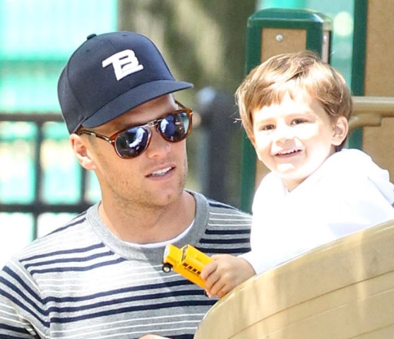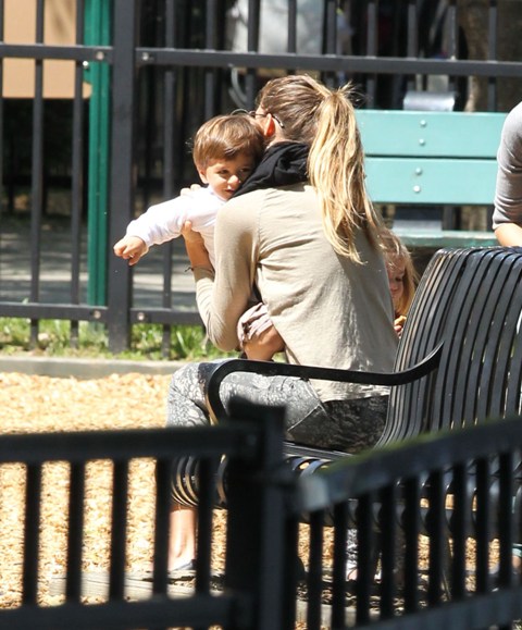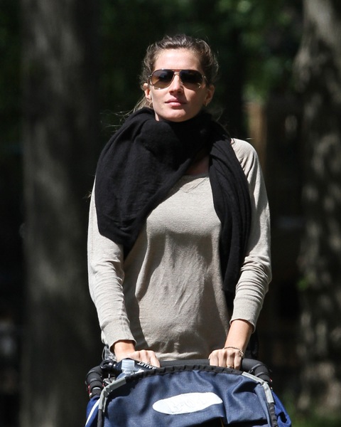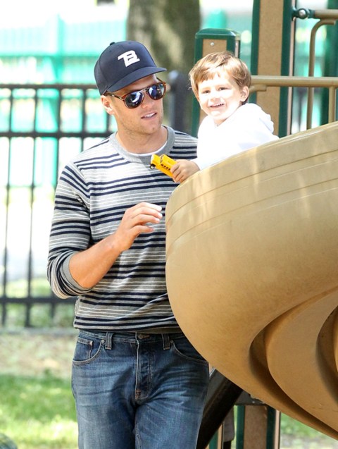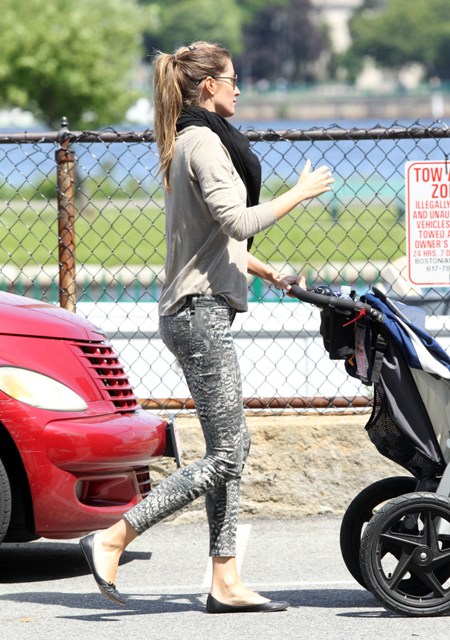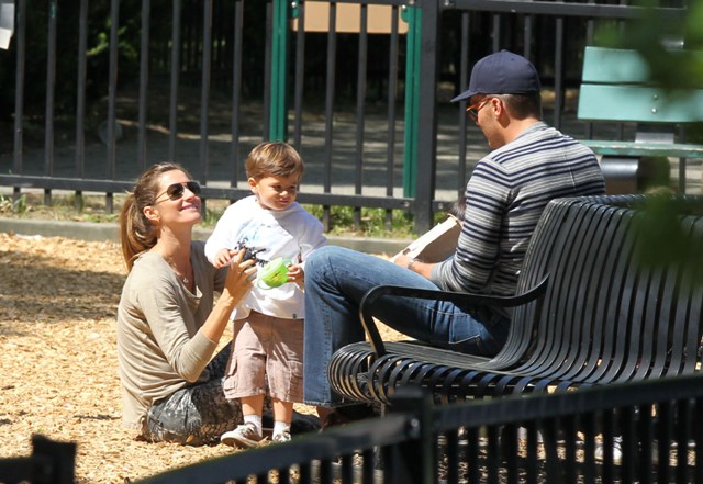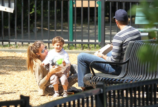 Gisele Bundchen and Tom Brady went to the park in Boston with their son Benjamin today. Paps say that Gisele and the baby were there first and when Tom arrived he and Gisele shared a big kiss. Apparently they looked super into each other.
